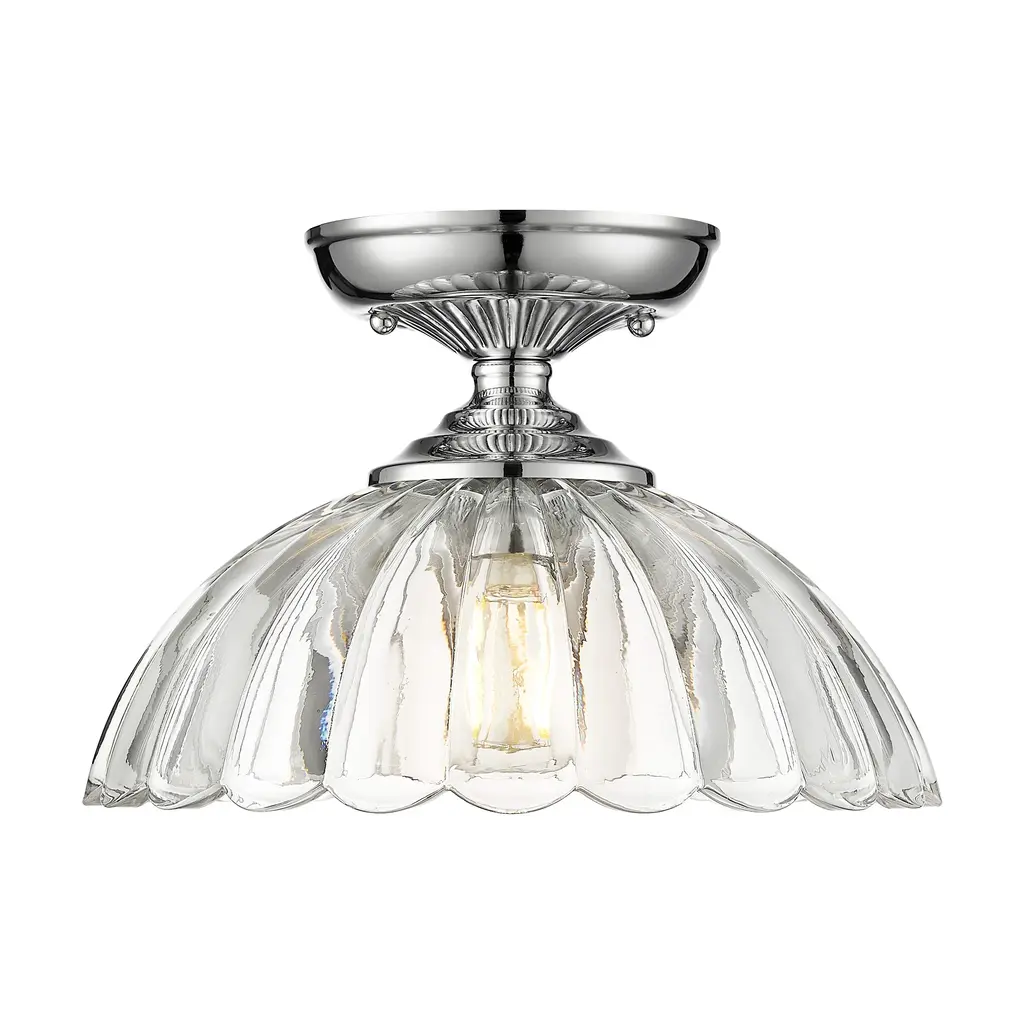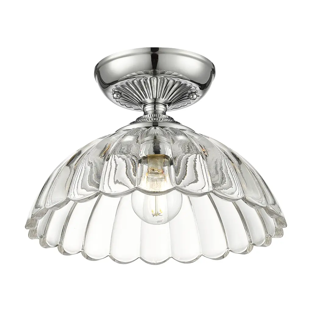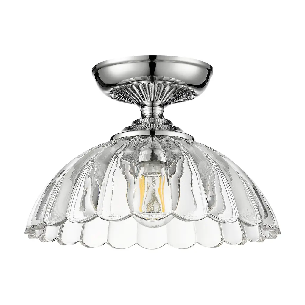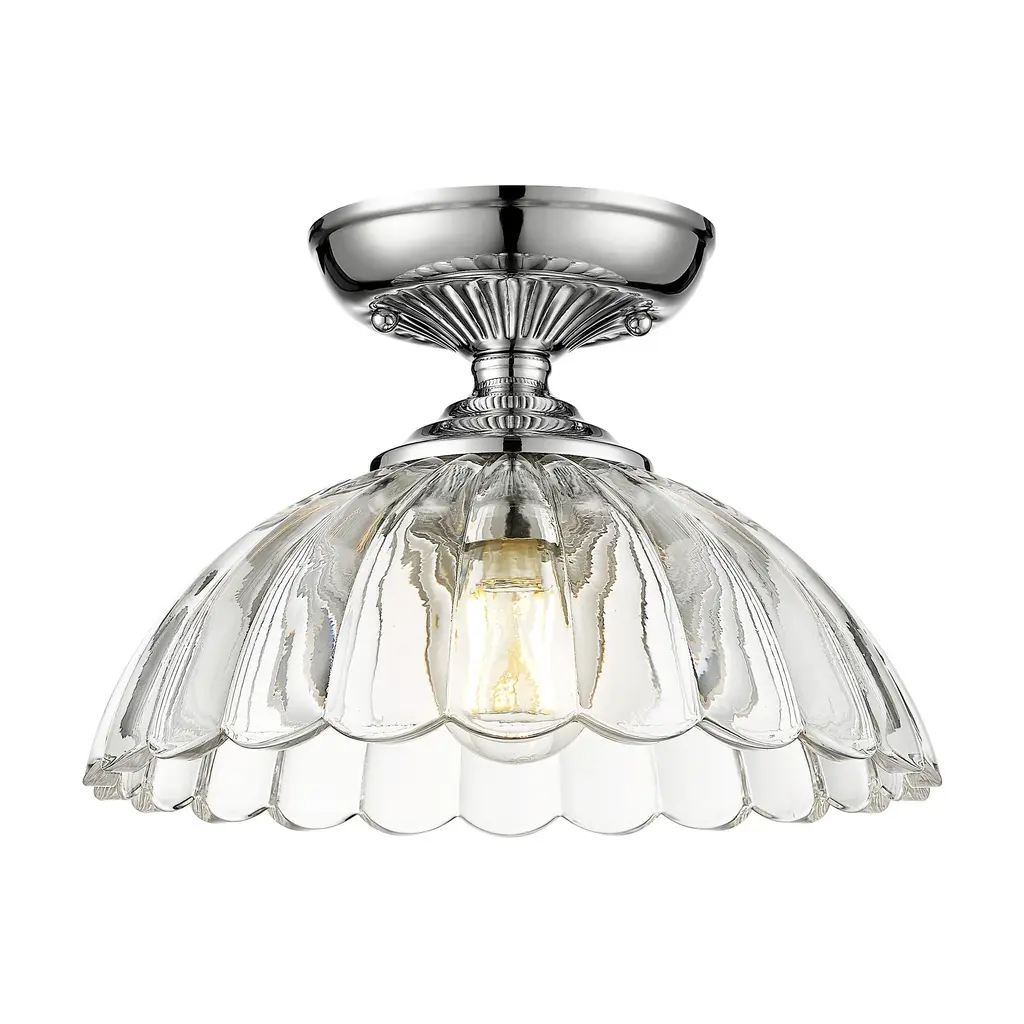 The traditional forms of the Audra collection have an updated, nostalgic look. Beautiful glass elements take center stage in the series, drawing eyes to the flared scalloped edges of the inverted glass bowls. Delicate patterns in the canopies echo the look of the decorative shades. Choose between select fixture types and finishes to create your desired look. Add these vintage-inspired, damp-rated fixtures anywhere in your home where you need bright light and want iconic style.