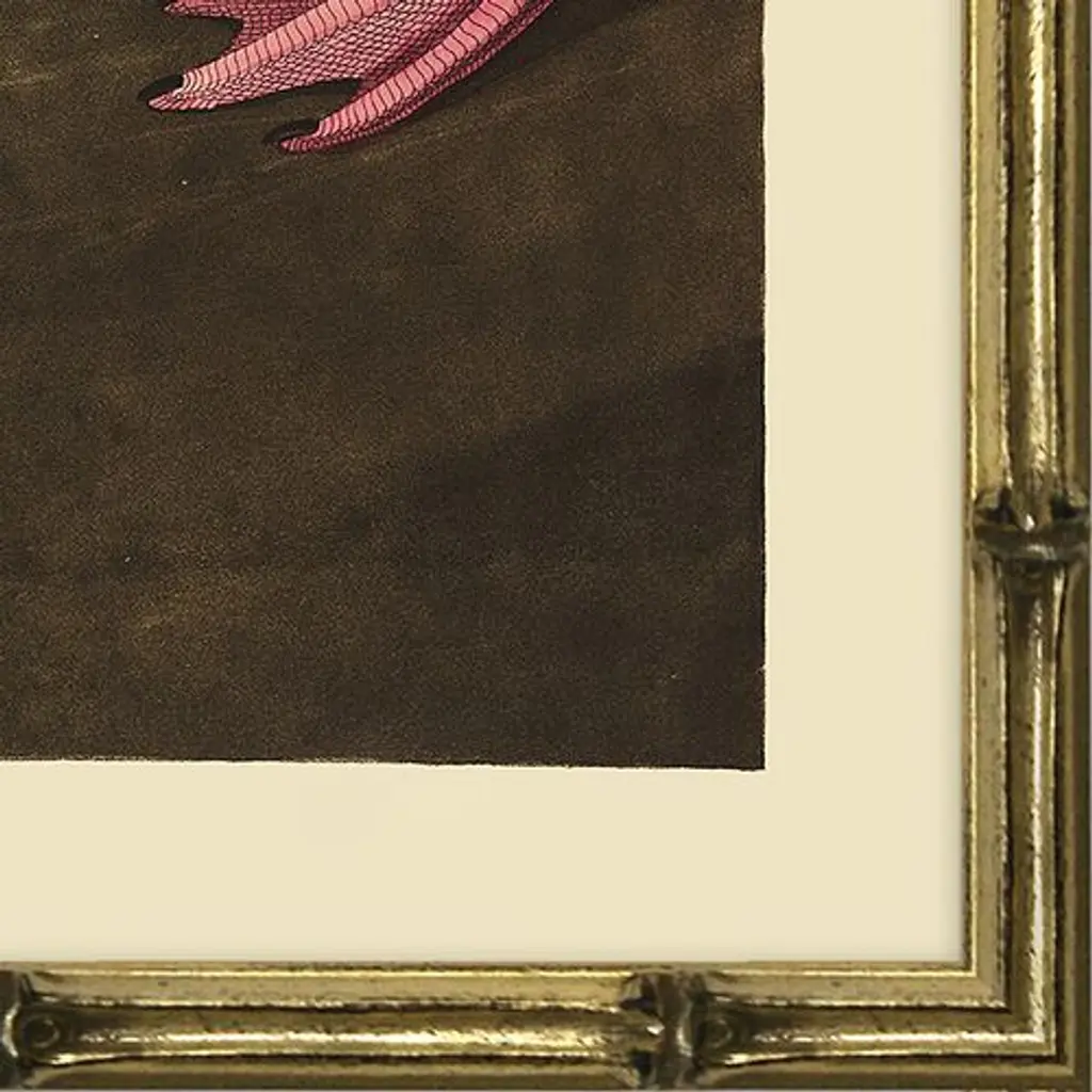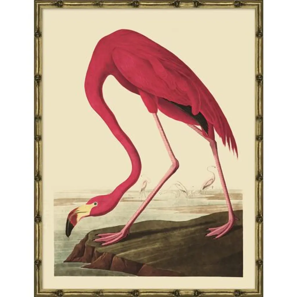 Beautifully rendered, this archival print of a flamingo captures the rich color and fine detail of the original. Printed on high-quality paper, matted, and framed, this piece arrives ready to hang.