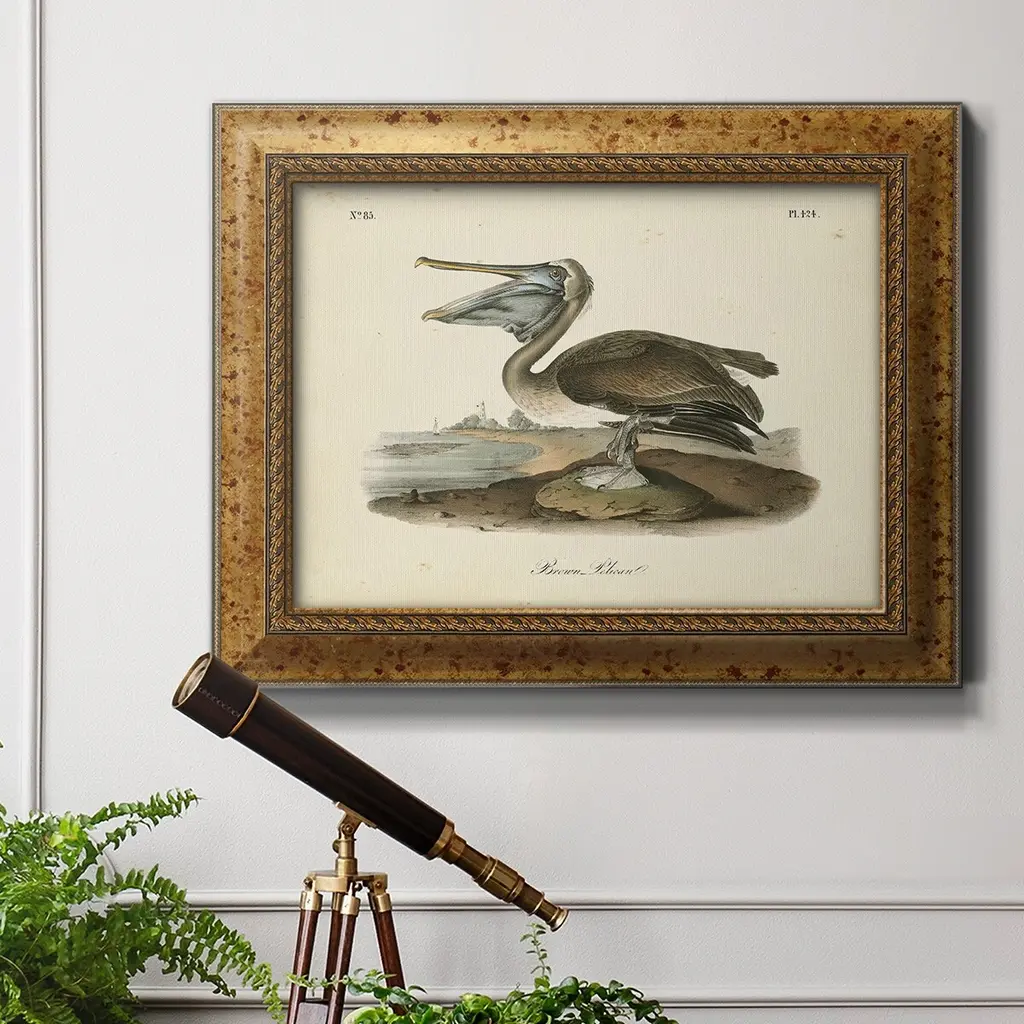 Audubons Brown Pelican Premium Framed Canvas- Ready To Hang - 18x27 - Gold