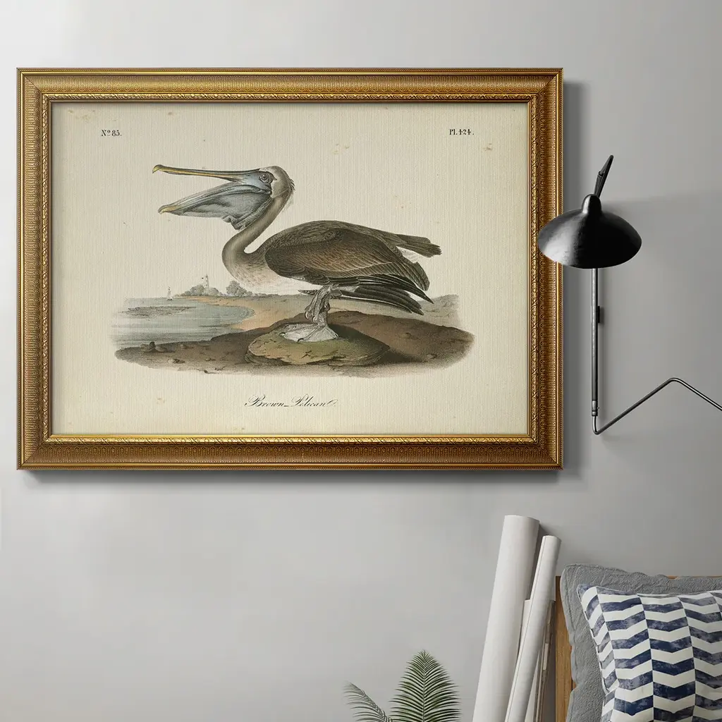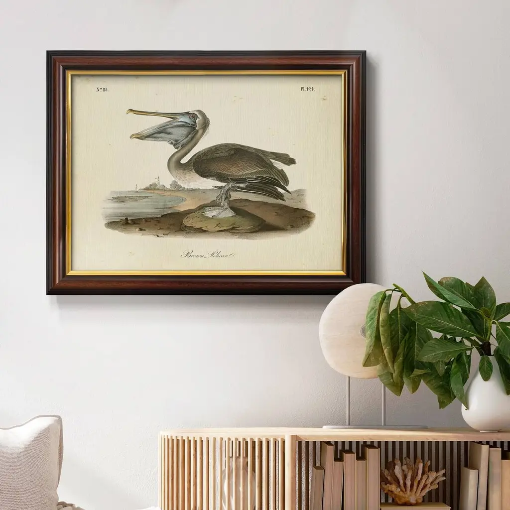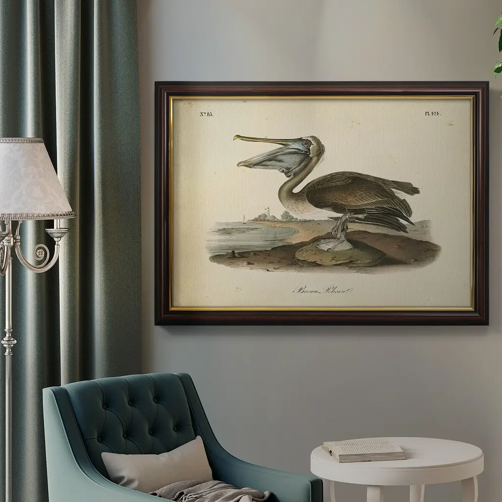 Audubons Brown Pelican Premium Framed Canvas- Ready To Hang - 18x27 - Mahogany