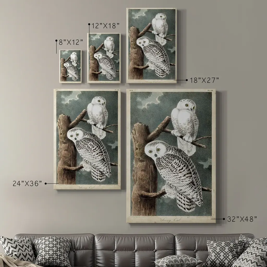 Audubons Snowy Owl Premium Gallery Wrapped Canvas - Ready to Hang A premium hand stretched gallery wrapped canvas print created to last. Featuring a beveled a solid wood stretcher bar, each piece comes ready to hand 6 SIZES AVAILABLE 8''X12'' - Overall Size 12''X18'' - Overall Size 18''X27'' - Overall Size 24''x36'' - Overall Size 32''x48'' - Overall Size 40''x60'' - Overall Size Each piece is made to order. Built to Last Each piece comes ready to hang Solid wood stretcher Fade and Water resistant Made domestically