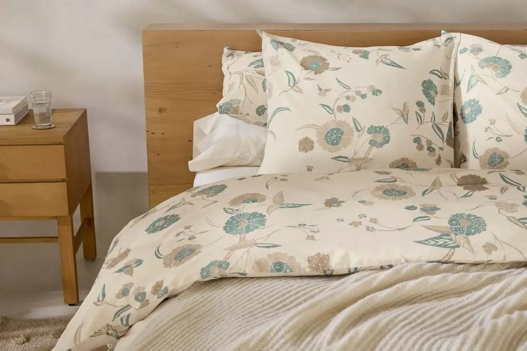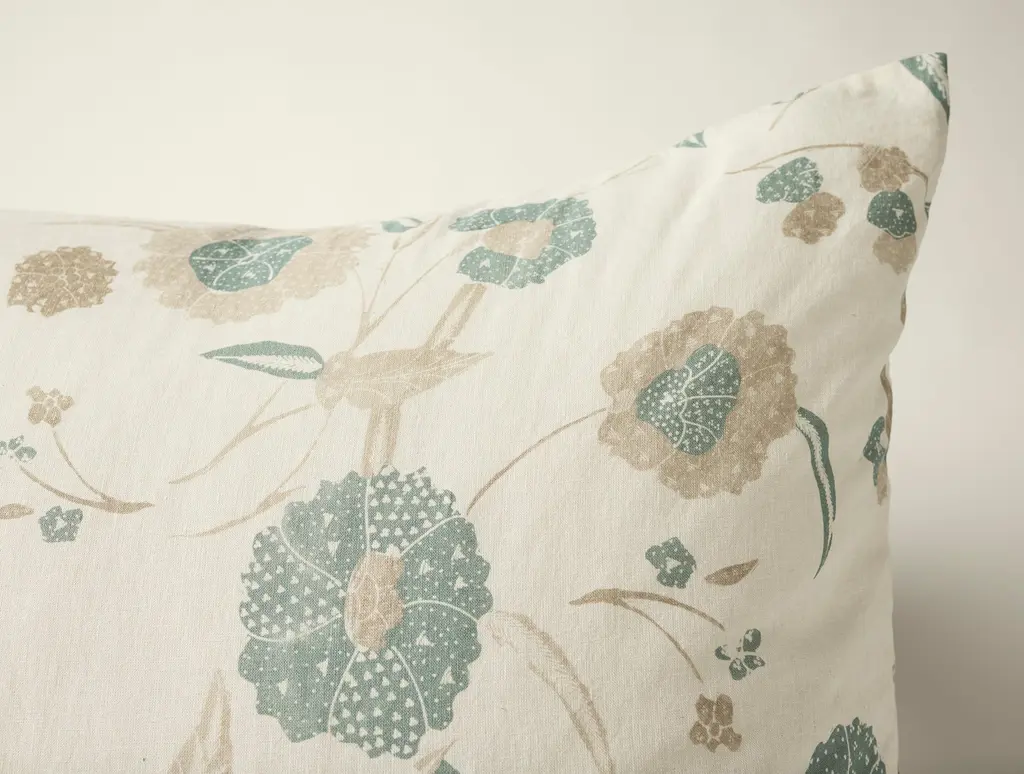 Bring the vintage charm of Indonesian batik prints to your bed with the Aurora Print Sham. Featuring soothing shades of Natural and Surf, it’s crafted from a blend of organic cotton that’s gentle on skin and pre-consumer recycled linen, sourced from unused fabrics to reduce landfill waste. Made in Portugal, each sham features a relaxed, comfortable handfeel and unique random cut design.