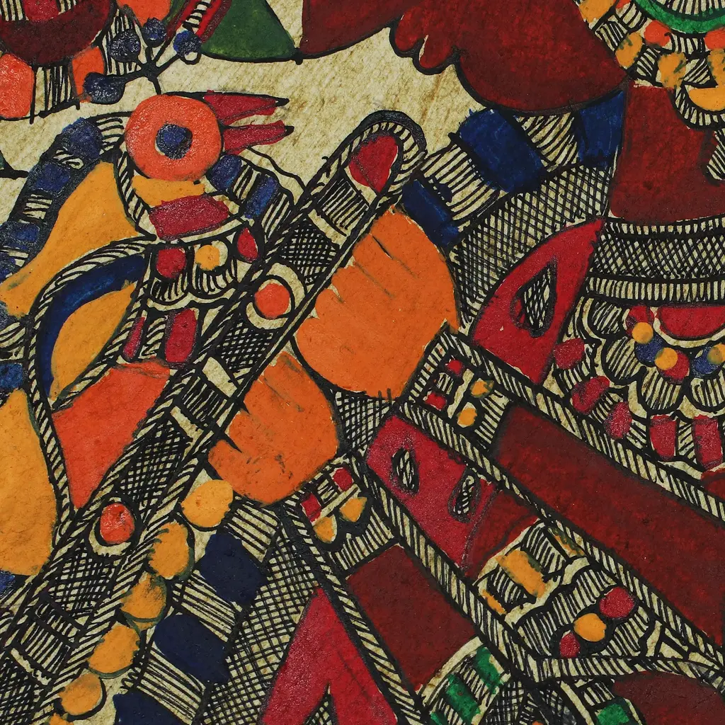 Authentic Signed Madhubani Folk Art Painting Of Krishna- Euphoria