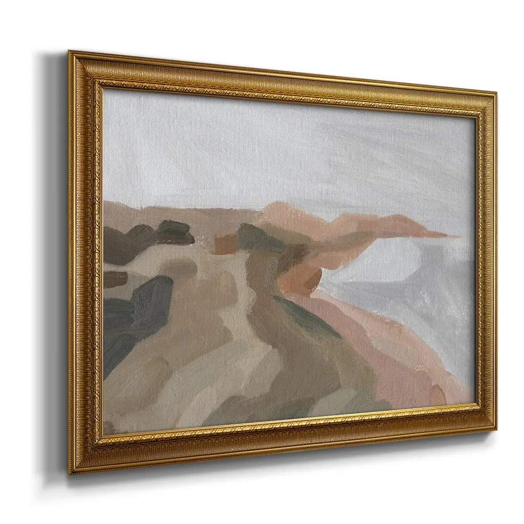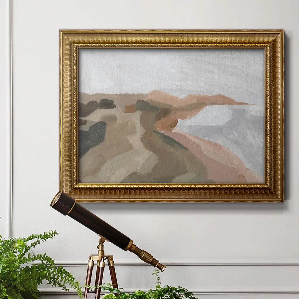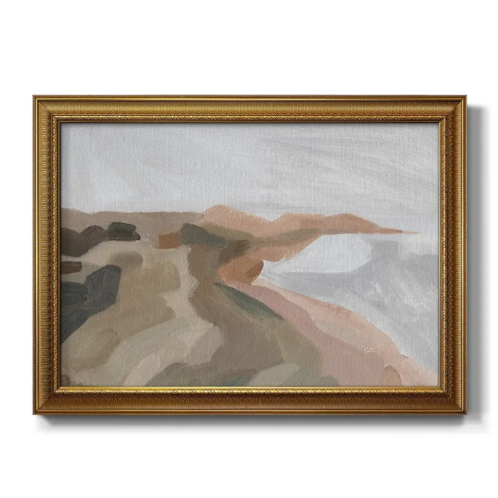 Autumn Coastline I Premium Framed Canvas- Ready to Hang A Premium Framed Canvas created to last. Framed in distressed wood and available in an array of sizes and colors Featuring a beveled a solid wood stretcher bar, each piece comes ready to hand 3 SIZES AVAILABLE 16''X20'' - Overall Size 18'X27'' - Overall Size 24''x36'' - Overall Size Each piece is made to order. Each piece comes with hanging hardware. Made in the USA Ready to Hang Giclee Paper Print Acrylic Glass Beveled Matt Board