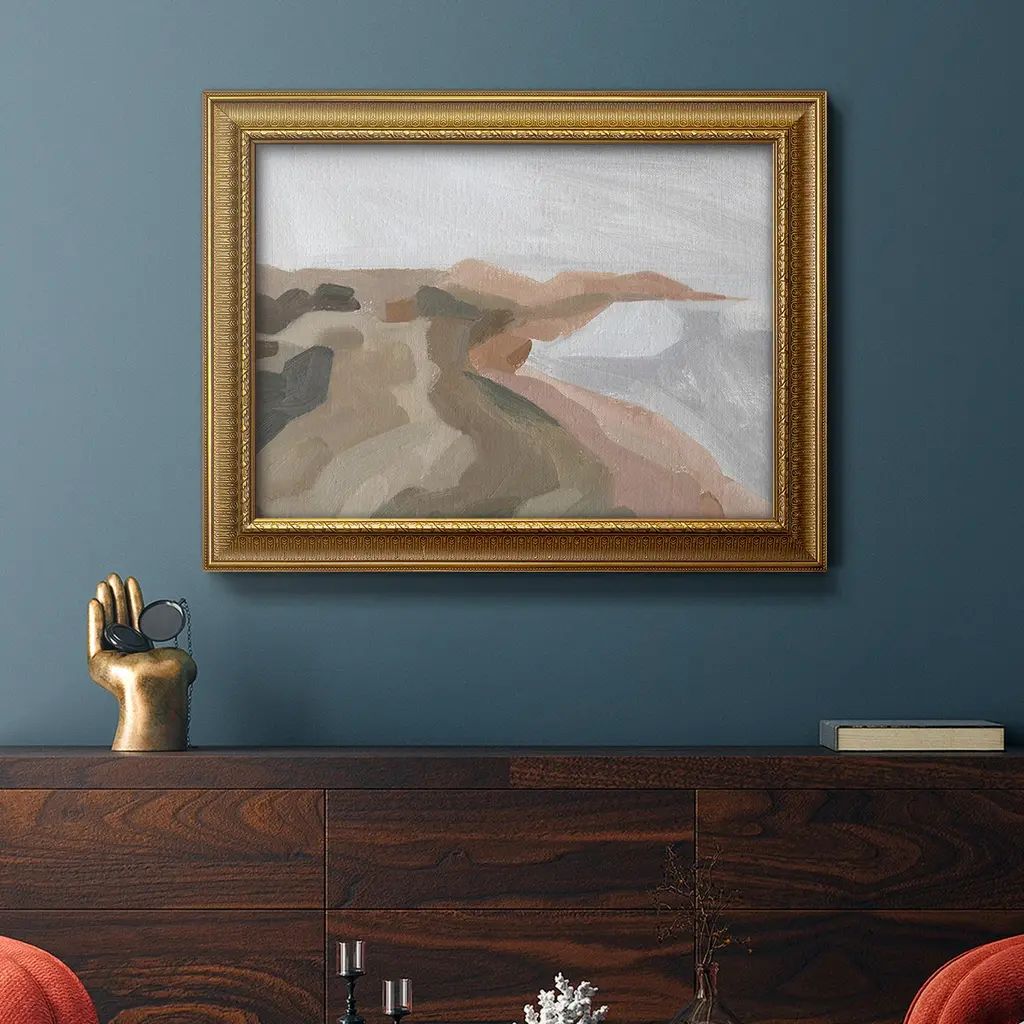 Autumn Coastline I Premium Framed Canvas- Ready to Hang A Premium Framed Canvas created to last. Framed in distressed wood and available in an array of sizes and colors Featuring a beveled a solid wood stretcher bar, each piece comes ready to hand 3 SIZES AVAILABLE 16''X20'' - Overall Size 18'X27'' - Overall Size 24''x36'' - Overall Size Each piece is made to order. Each piece comes with hanging hardware. Made in the USA Ready to Hang Giclee Paper Print Acrylic Glass Beveled Matt Board