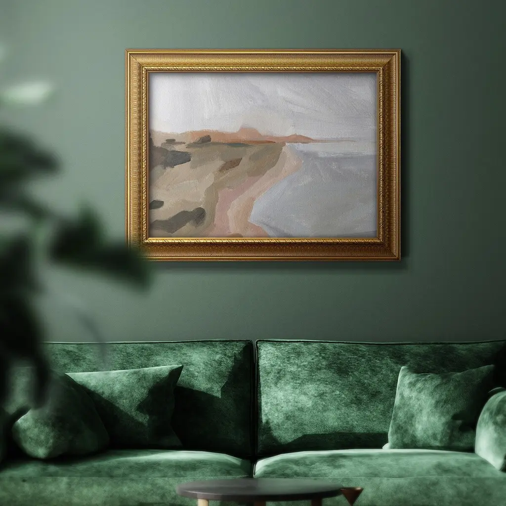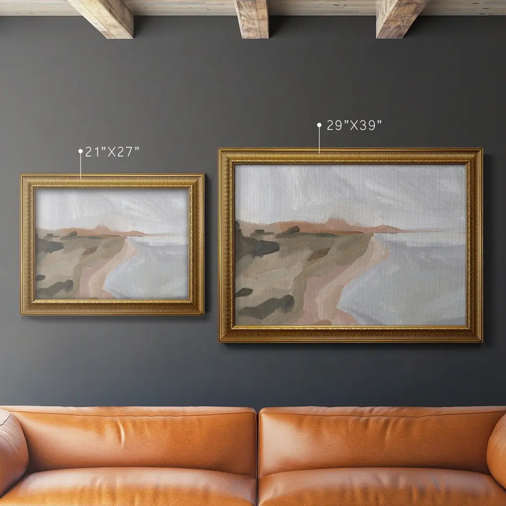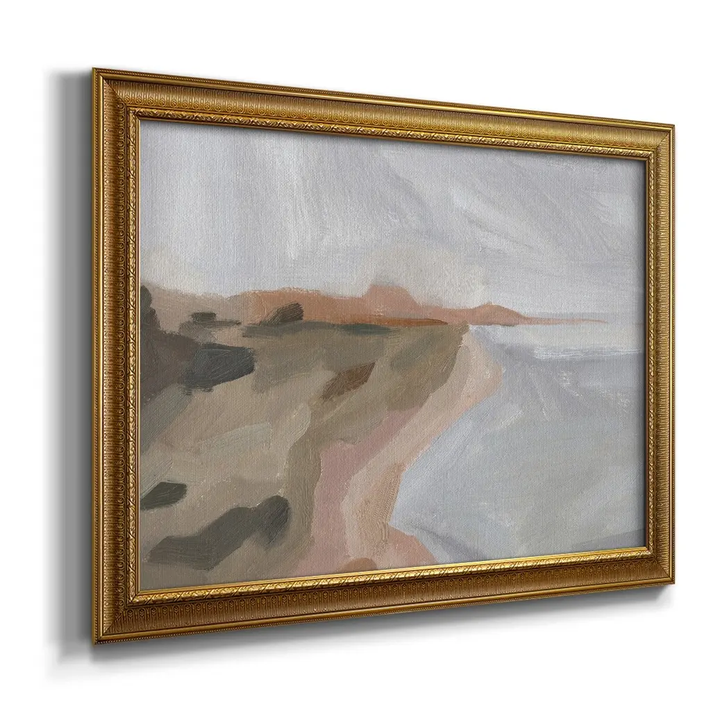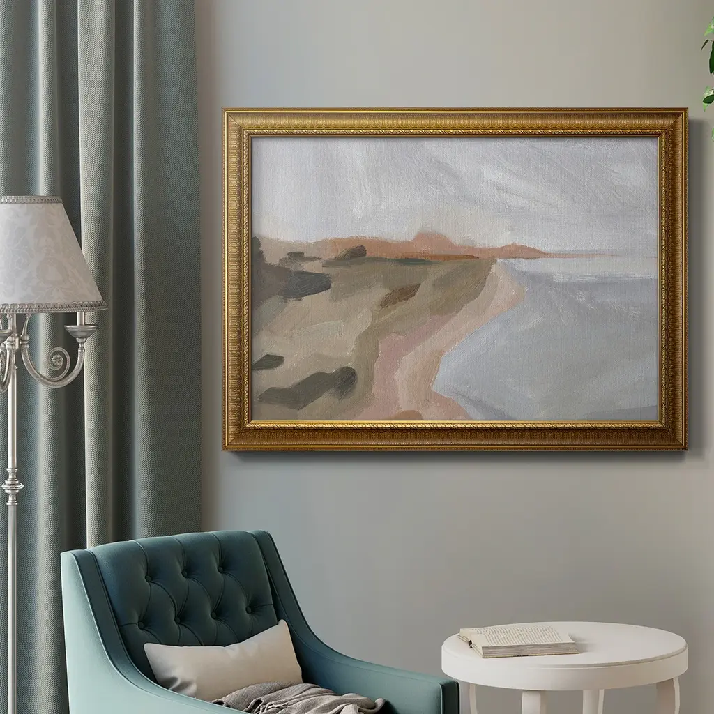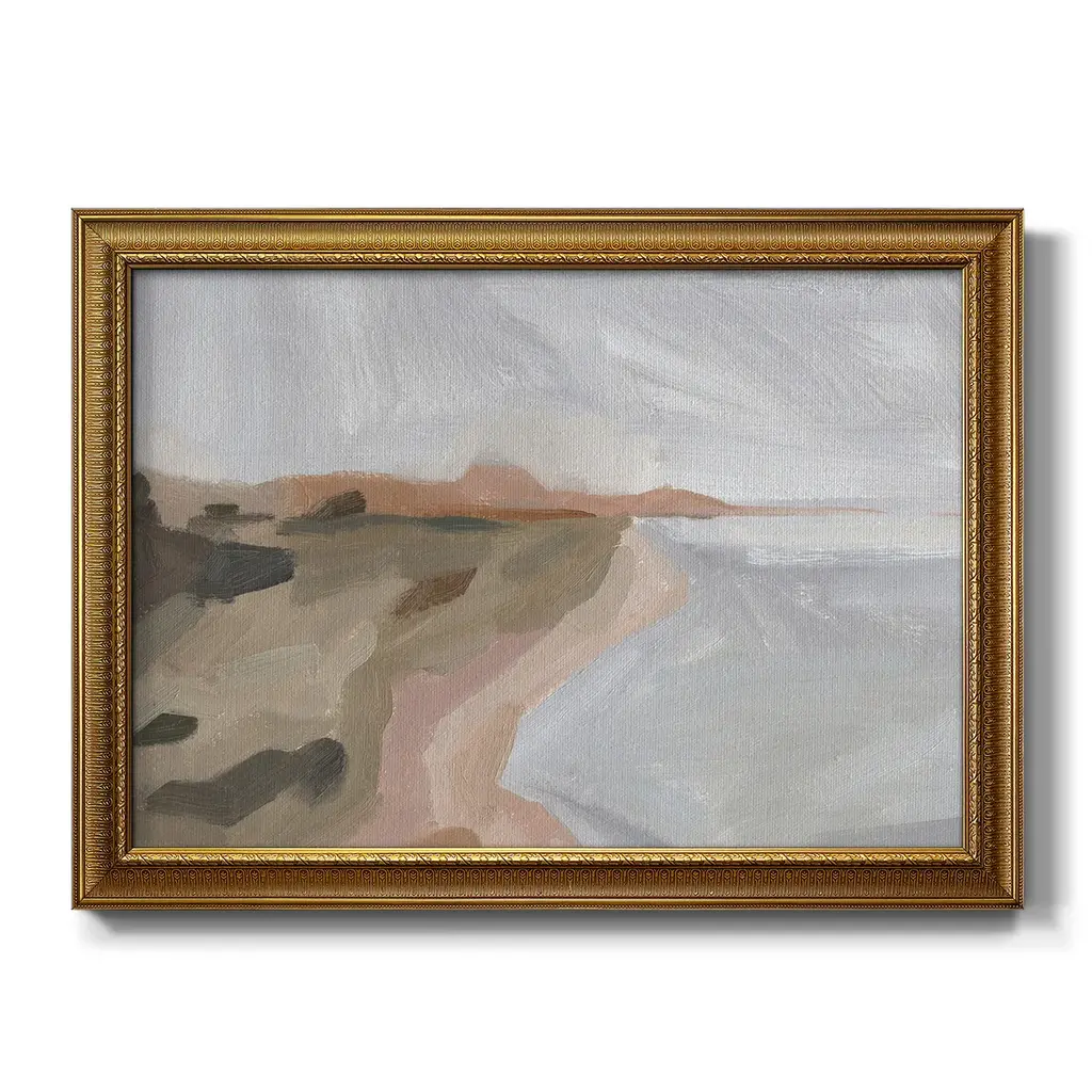Autumn Coastline II Premium Framed Canvas- Ready to Hang A Premium Framed Canvas created to last. Framed in distressed wood and available in an array of sizes and colors Featuring a beveled a solid wood stretcher bar, each piece comes ready to hand 3 SIZES AVAILABLE 16''X20'' - Overall Size 18'X27'' - Overall Size 24''x36'' - Overall Size Each piece is made to order. Each piece comes with hanging hardware. Made in the USA Ready to Hang Giclee Paper Print Acrylic Glass Beveled Matt Board