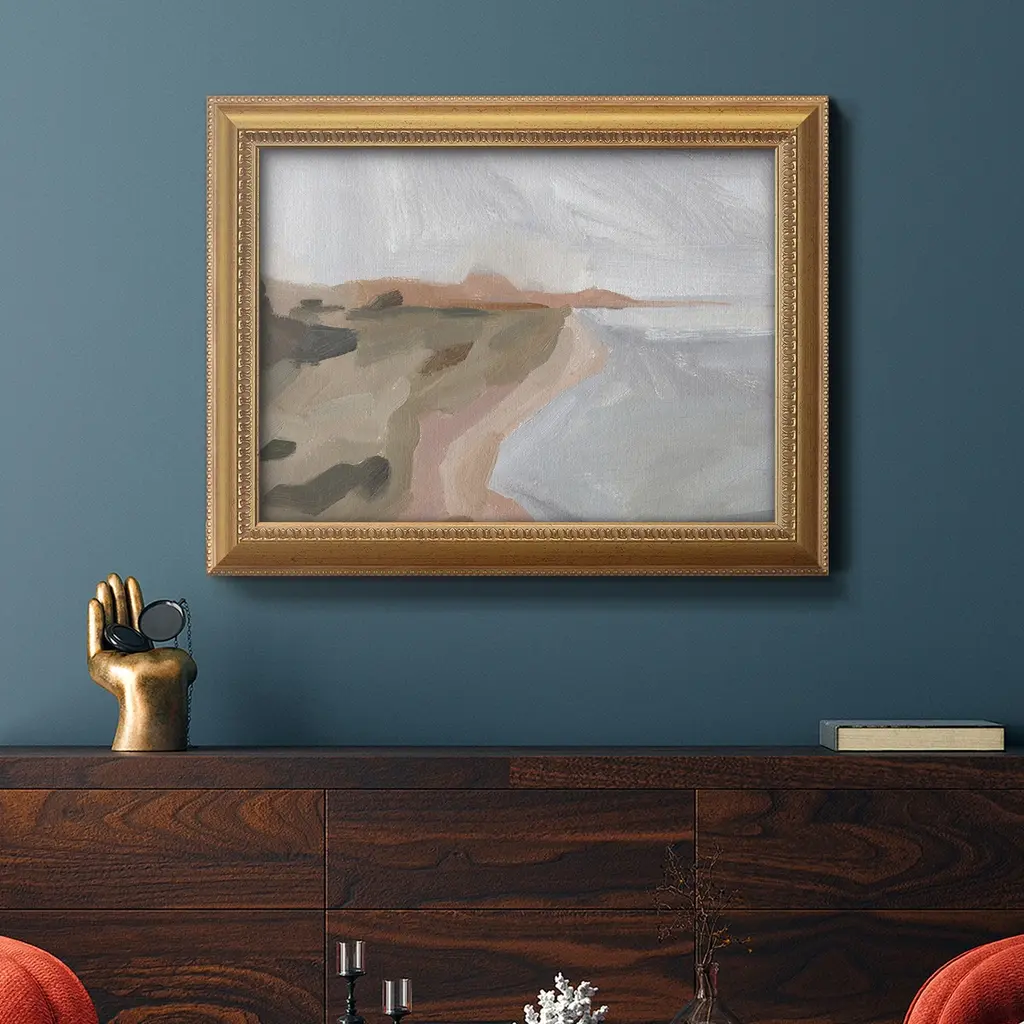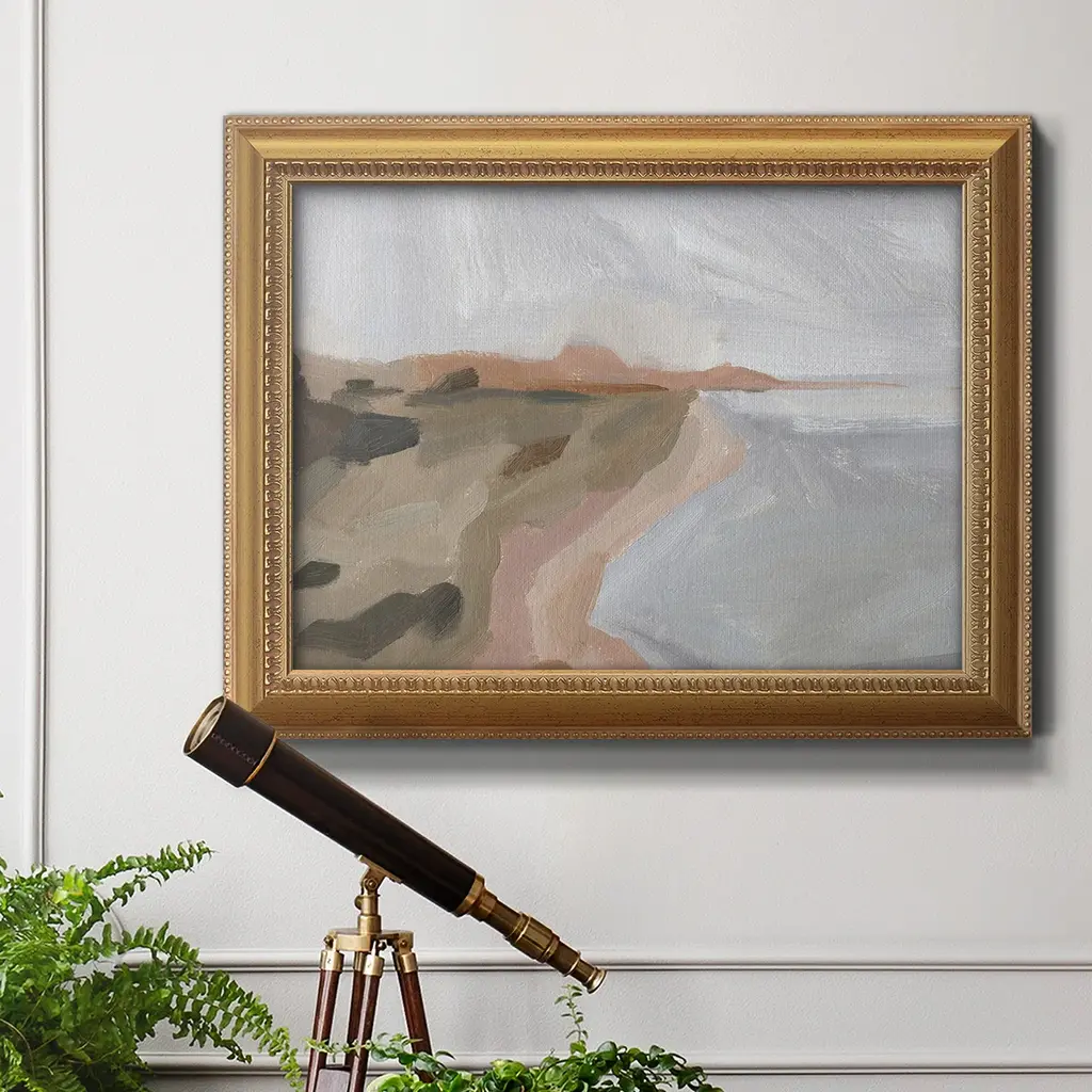Autumn Coastline II Premium Framed Canvas- Ready to Hang A Premium Framed Canvas created to last. Framed in distressed wood and available in an array of sizes and colors Featuring a beveled a solid wood stretcher bar, each piece comes ready to hand 3 SIZES AVAILABLE 16''X20'' - Overall Size 18'X27'' - Overall Size 24''x36'' - Overall Size Each piece is made to order. Each piece comes with hanging hardware. Made in the USA Ready to Hang Giclee Paper Print Acrylic Glass Beveled Matt Board