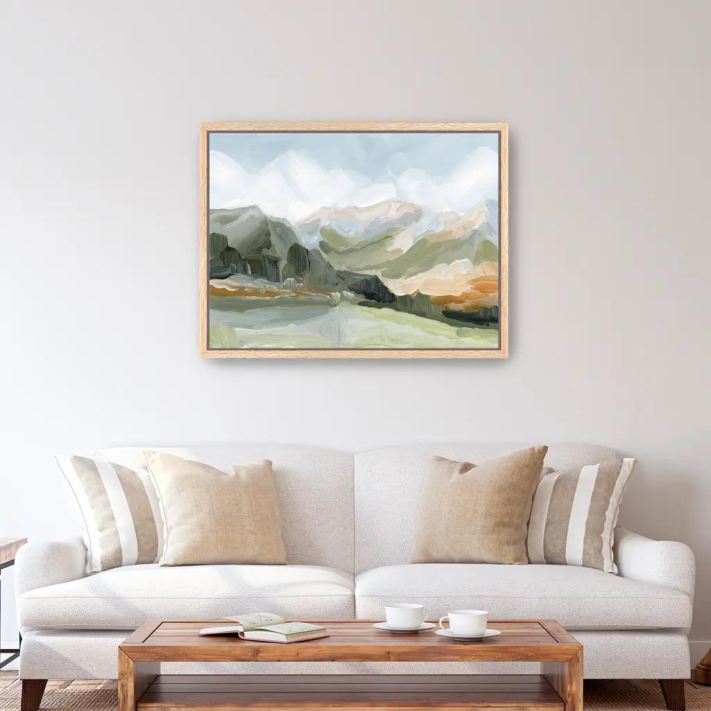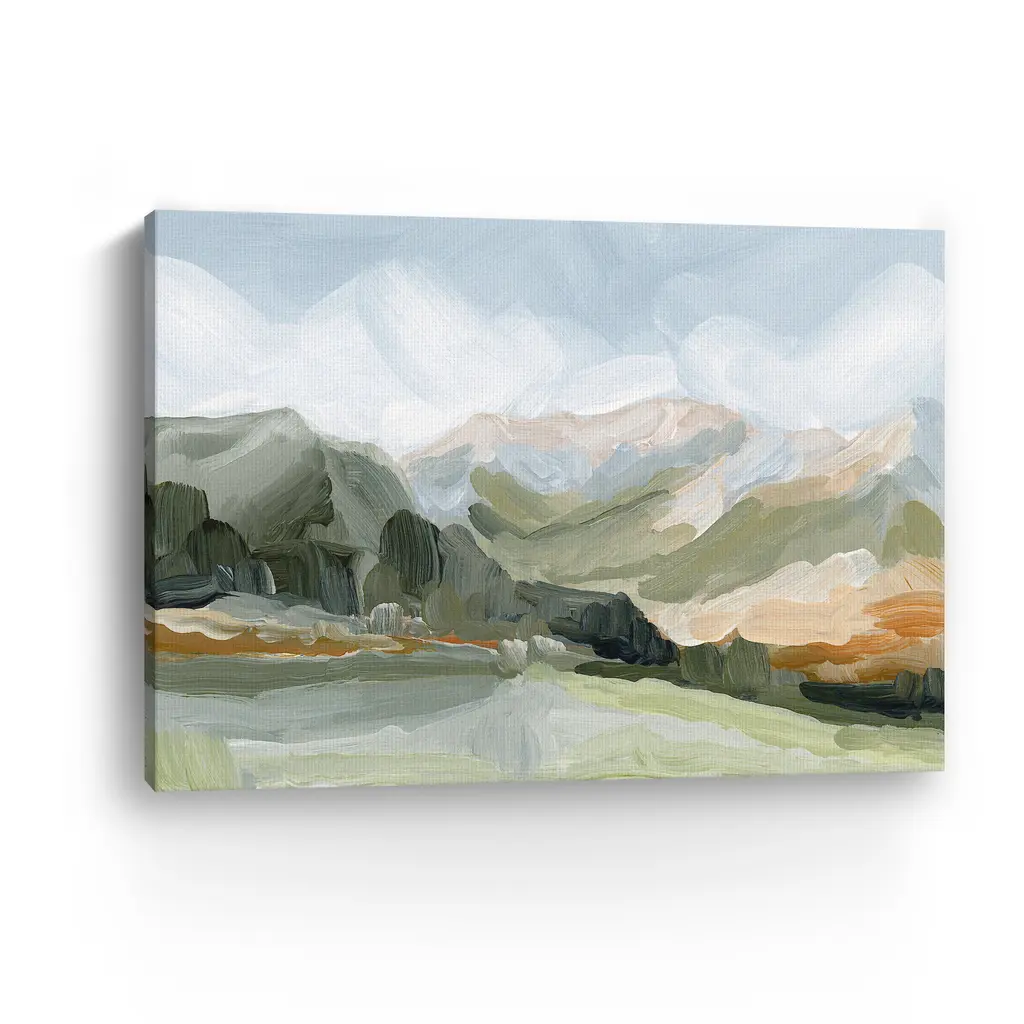 Add a breath of fresh air to your walls with this neutral-toned landscape canvas, where gentle greens and soft shadows create a soothing visual escape. Ideal for creating a grounded, nature-inspired atmosphere in any space. Our Gallery Wrap Canvas Prints are proudly assembled with high quality materials in California, USA. Each piece is printed on a thick, archival grade canvas using Giclee technology. It is then hand-stretched by our experienced artisans over solid wood bars, which will not warp over time. The final product is a piece personally crafted for you to confidently display on your wall. Care and Assembly: Ensure that the location of your piece has little to no exposure to heat, sunlight, and moisture. Wipe clean, only if needed. Each piece includes hanging hardware to hang on your wall horizontally.