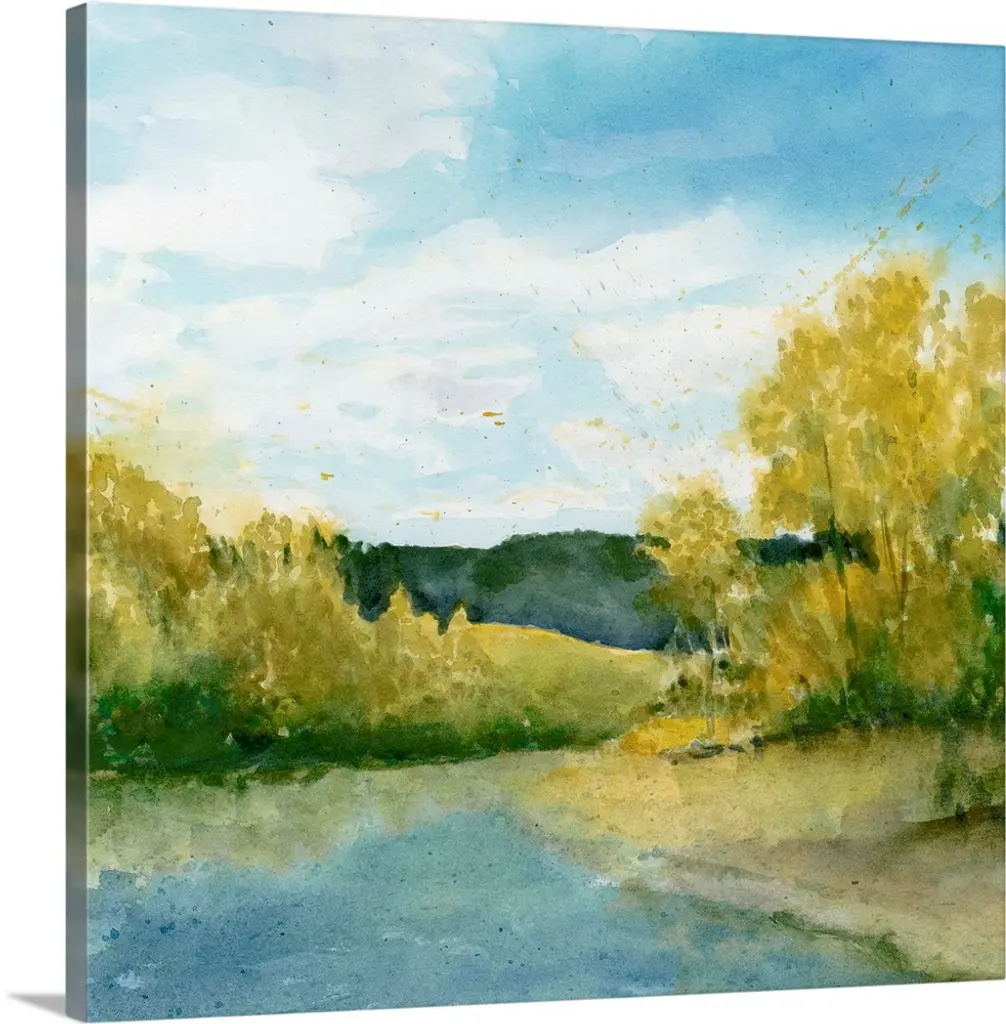 Autumn Forest And Lake Watercolor, Landscape Disc Metal Wall Art, 36"