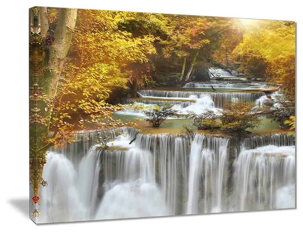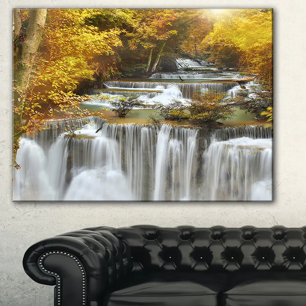 The Autumn Huai Mae Kamin Waterfall canvas art print is sure to make an impression on anyone who sees it. This artwork is gallery wrapped around a 1-inch solid wood frame and arrives carefully packaged and entirely ready to hang on the wall. Design Art only uses the highest resolution and pigments to ensure a crisp colorful print that is never faded or pixelated. This artwork is sure to be a conversation starter in any home or office.
