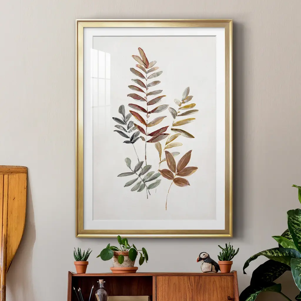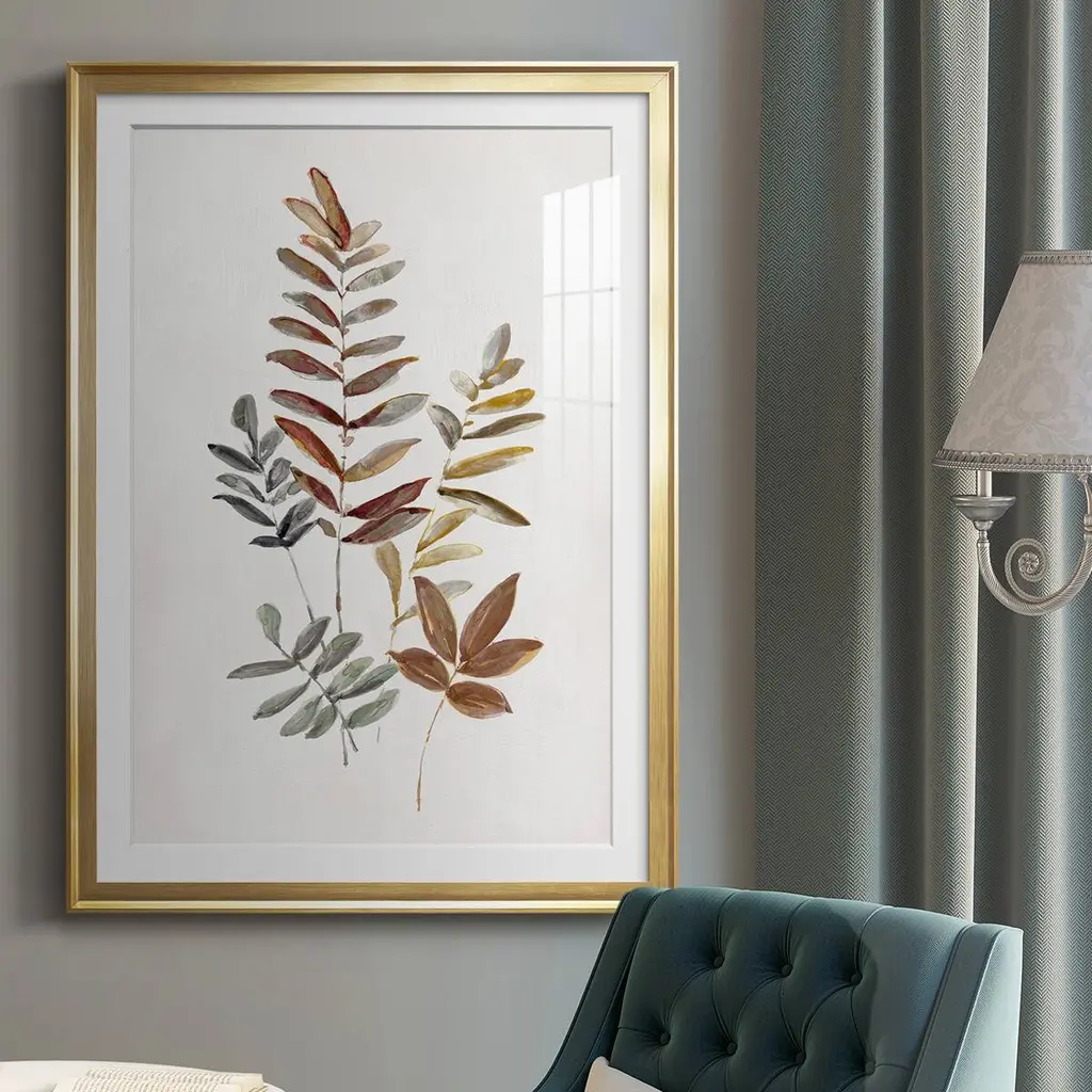 Autumn Leaves I Premium Framed Print - Ready to Hang A Premium Framed Print created to last. Framed in distressed wood and available in an array of sizes and colors Featuring a beveled a solid wood stretcher bar, each piece comes ready to hand 4 SIZES AVAILABLE 30.5''X42.5'' - Overall Size 26.5'X36.5'' - Overall Size 22.5''x30.5'' - Overall Size 18.5''x24.5'' - Overall Size Each piece is made to order. Each piece comes with hanging hardware. Made in the USA Ready to Hang Giclee Paper Print Acrylic Glass Beveled Matt Board
