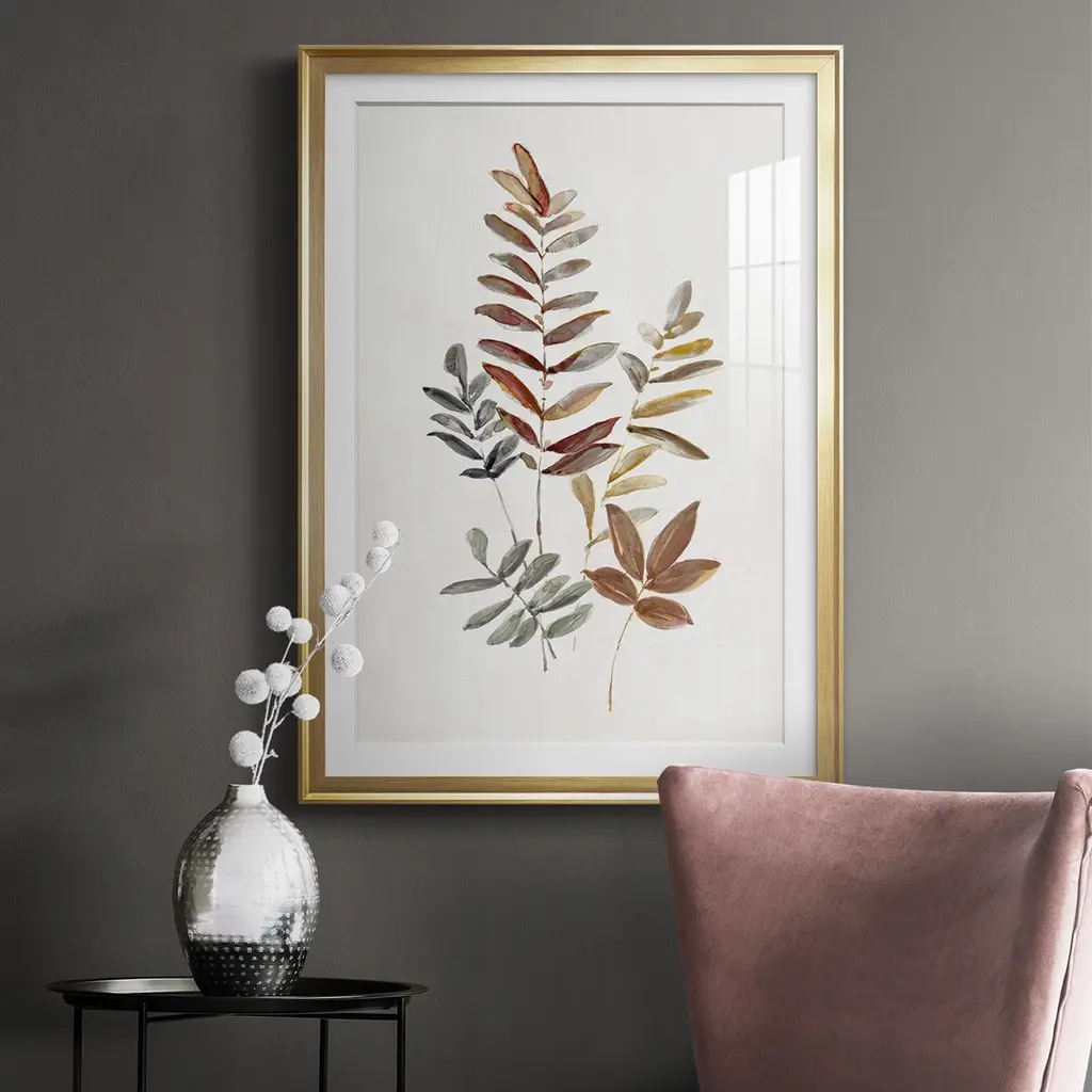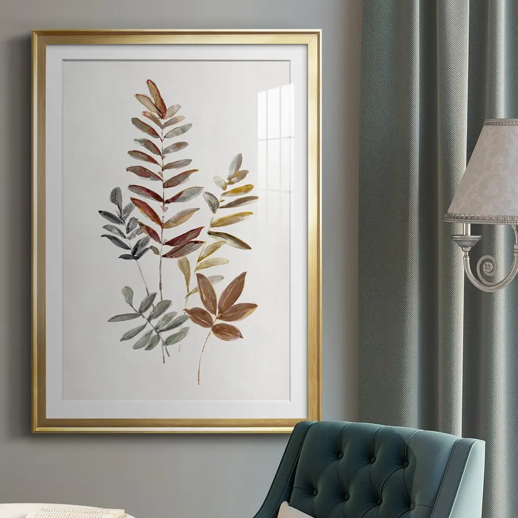 Autumn Leaves I Premium Framed Print - Ready to Hang A Premium Framed Print created to last. Framed in distressed wood and available in an array of sizes and colors Featuring a beveled a solid wood stretcher bar, each piece comes ready to hand 4 SIZES AVAILABLE 30.5''X42.5'' - Overall Size 26.5'X36.5'' - Overall Size 22.5''x30.5'' - Overall Size 18.5''x24.5'' - Overall Size Each piece is made to order. Each piece comes with hanging hardware. Made in the USA Ready to Hang Giclee Paper Print Acrylic Glass Beveled Matt Board