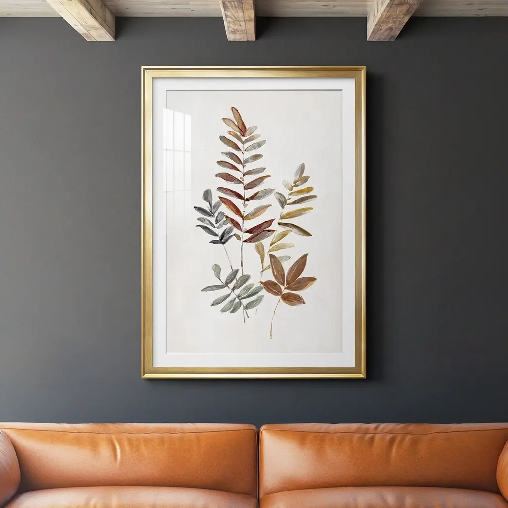 Autumn Leaves I Premium Framed Print - Ready to Hang A Premium Framed Print created to last. Framed in distressed wood and available in an array of sizes and colors Featuring a beveled a solid wood stretcher bar, each piece comes ready to hand 4 SIZES AVAILABLE 30.5''X42.5'' - Overall Size 26.5'X36.5'' - Overall Size 22.5''x30.5'' - Overall Size 18.5''x24.5'' - Overall Size Each piece is made to order. Each piece comes with hanging hardware. Made in the USA Ready to Hang Giclee Paper Print Acrylic Glass Beveled Matt Board