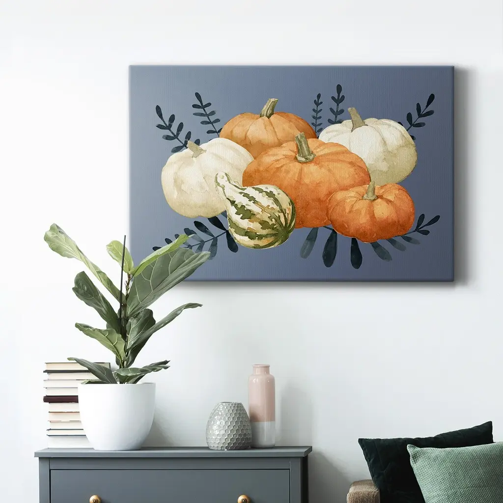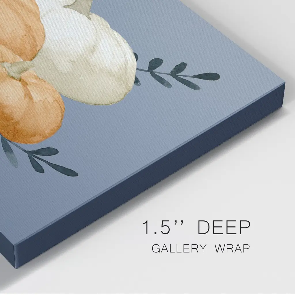Autumn Orange & Blues I Premium Gallery Wrapped Canvas - Ready to Hang A premium hand stretched gallery wrapped canvas print created to last. Featuring a beveled a solid wood stretcher bar, each piece comes ready to hand 6 SIZES AVAILABLE 8''X12'' - Overall Size 12''X18'' - Overall Size 18''X27'' - Overall Size 24''x36'' - Overall Size 32''x48'' - Overall Size 40''x60'' - Overall Size Each piece is made to order. Built to Last Each piece comes ready to hang Solid wood stretcher Fade and Water resistant Made domestically