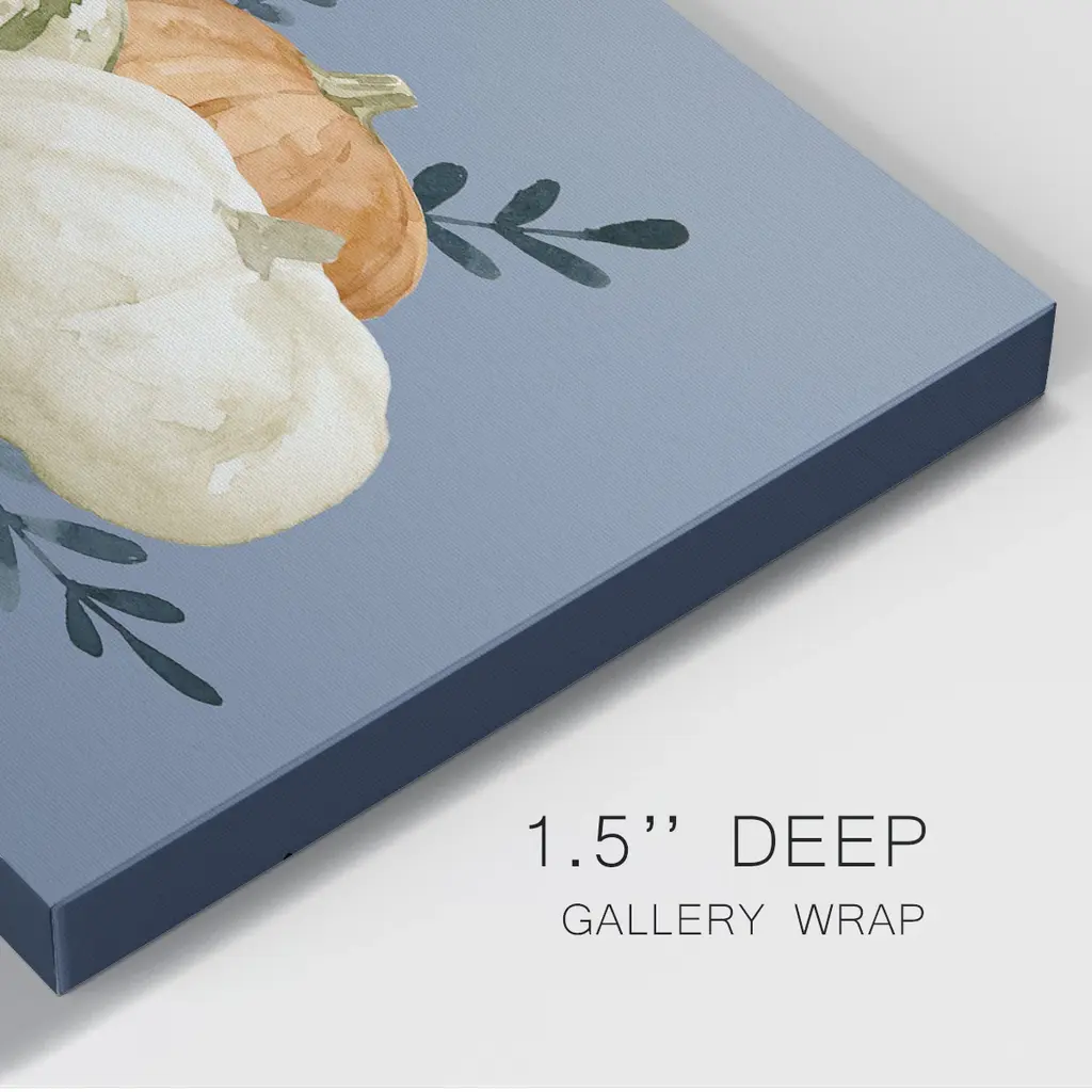 Autumn Orange & Blues II Premium Gallery Wrapped Canvas - Ready to Hang A premium hand stretched gallery wrapped canvas print created to last. Featuring a beveled a solid wood stretcher bar, each piece comes ready to hand 6 SIZES AVAILABLE 8''X12'' - Overall Size 12''X18'' - Overall Size 18''X27'' - Overall Size 24''x36'' - Overall Size 32''x48'' - Overall Size 40''x60'' - Overall Size Each piece is made to order. Built to Last Each piece comes ready to hang Solid wood stretcher Fade and Water resistant Made domestically