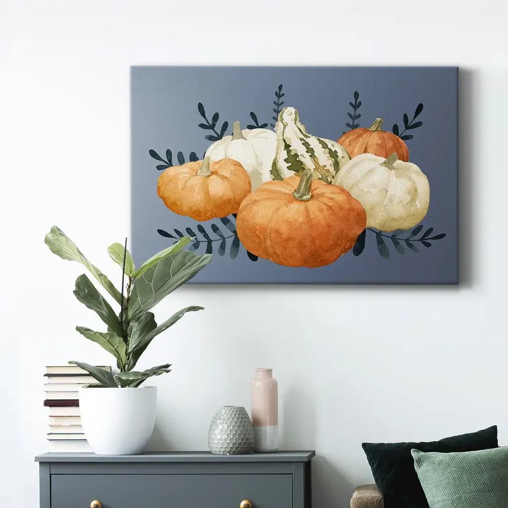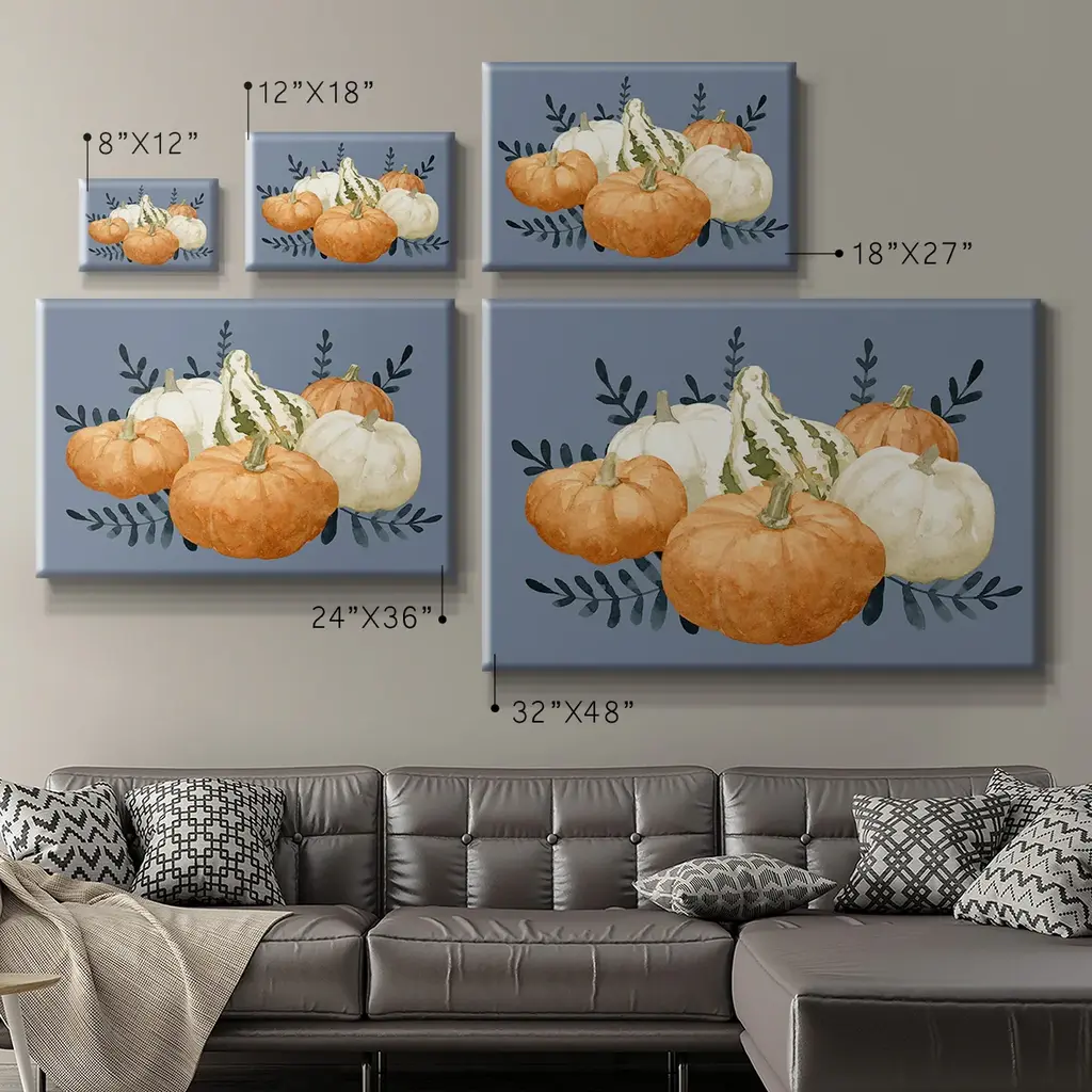 Autumn Orange & Blues II Premium Gallery Wrapped Canvas - Ready to Hang A premium hand stretched gallery wrapped canvas print created to last. Featuring a beveled a solid wood stretcher bar, each piece comes ready to hand 6 SIZES AVAILABLE 8''X12'' - Overall Size 12''X18'' - Overall Size 18''X27'' - Overall Size 24''x36'' - Overall Size 32''x48'' - Overall Size 40''x60'' - Overall Size Each piece is made to order. Built to Last Each piece comes ready to hang Solid wood stretcher Fade and Water resistant Made domestically