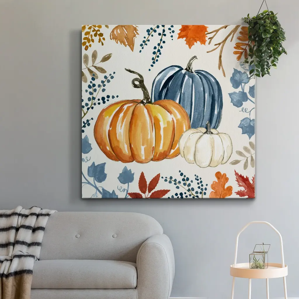 Autumn Pumpkin I-Premium Gallery Wrapped Canvas - Ready to Hang A premium hand stretched gallery wrapped canvas print created to last. Featuring a beveled a solid wood stretcher bar, each piece comes ready to hand 5 SIZES AVAILABLE 10''X10'' - Overall Size 16''x16'' - Overall Size 24''x24'' - Overall Size 32''x32'' - Overall Size 40''x40'' - Overall Size Each piece is made to order. Built to Last Each piece comes ready to hang Solid wood stretcher Fade and Water resistant Made domestically