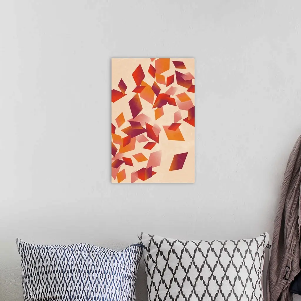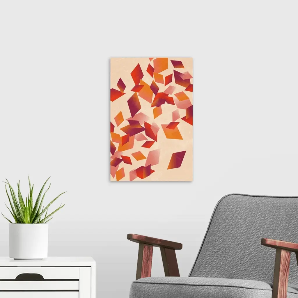 Contemporary geometric artwork of diamond shapes in warm colors against a cream background.