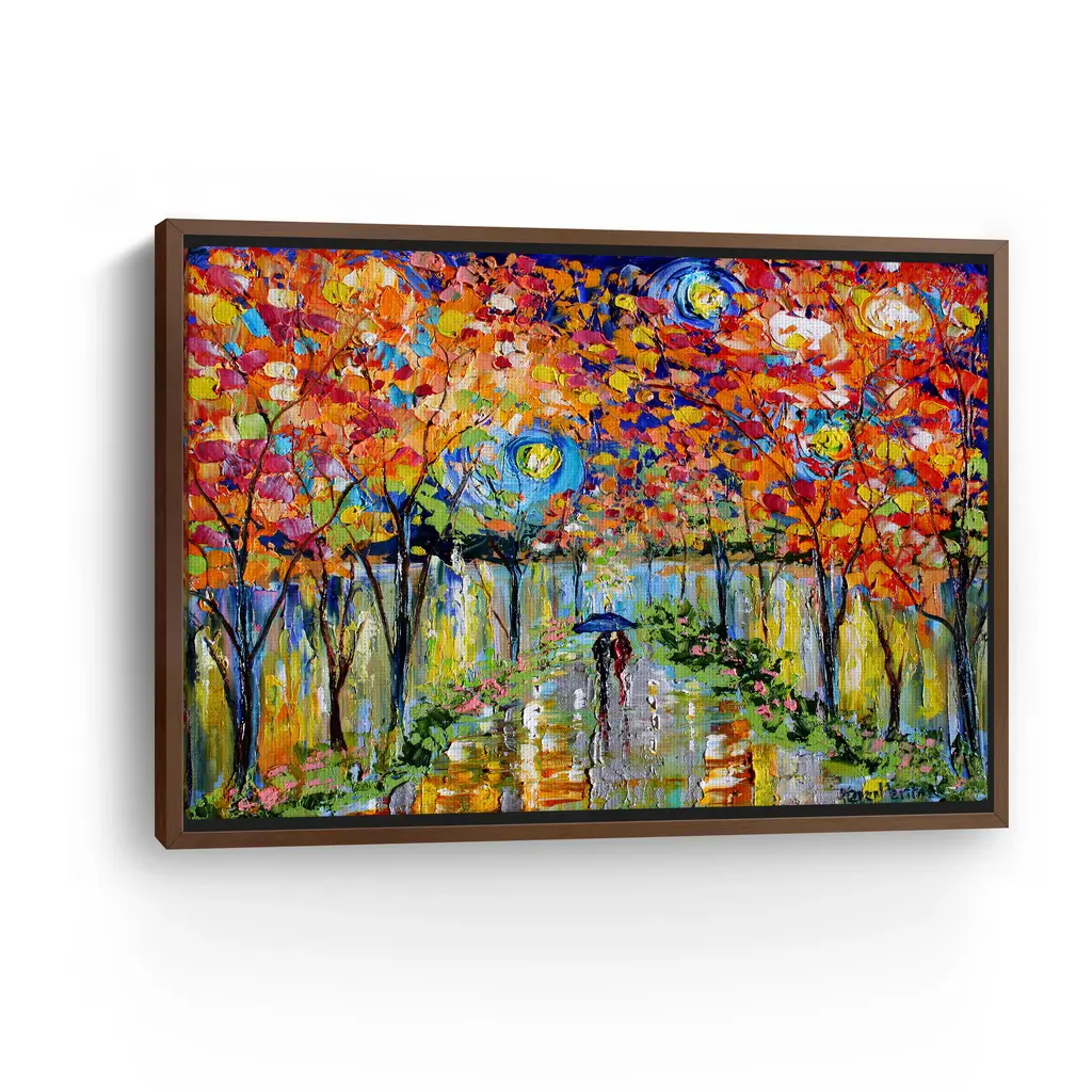 Autumn Starry Night Canvas Giclee - Framed / Oak / 30x40