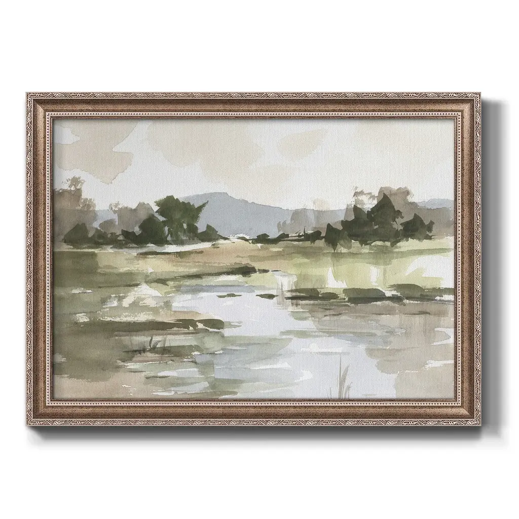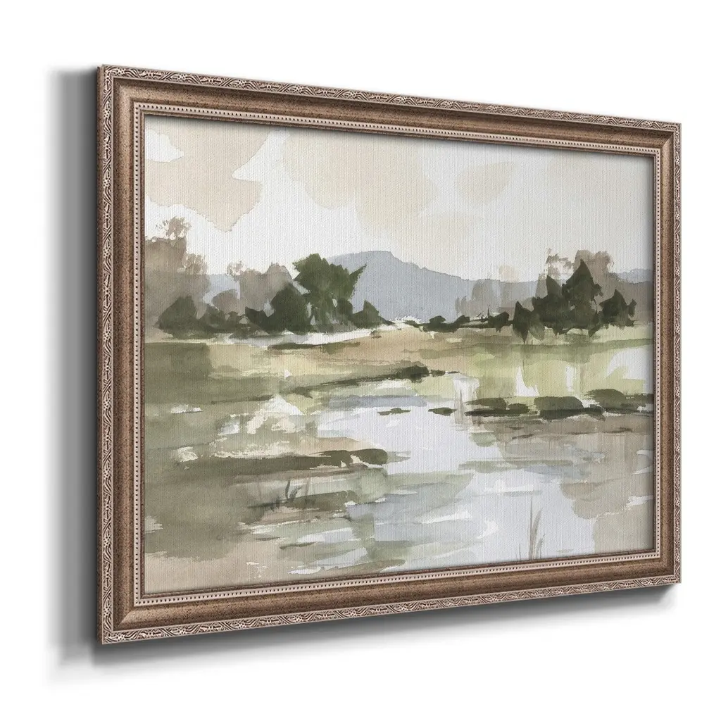 Autumn Stream I Premium Framed Canvas- Ready to Hang A Premium Framed Canvas created to last. Framed in distressed wood and available in an array of sizes and colors Featuring a beveled a solid wood stretcher bar, each piece comes ready to hand 3 SIZES AVAILABLE 16''X20'' - Overall Size 18'X27'' - Overall Size 24''x36'' - Overall Size Each piece is made to order. Each piece comes with hanging hardware. Made in the USA Ready to Hang Giclee Paper Print Acrylic Glass Beveled Matt Board