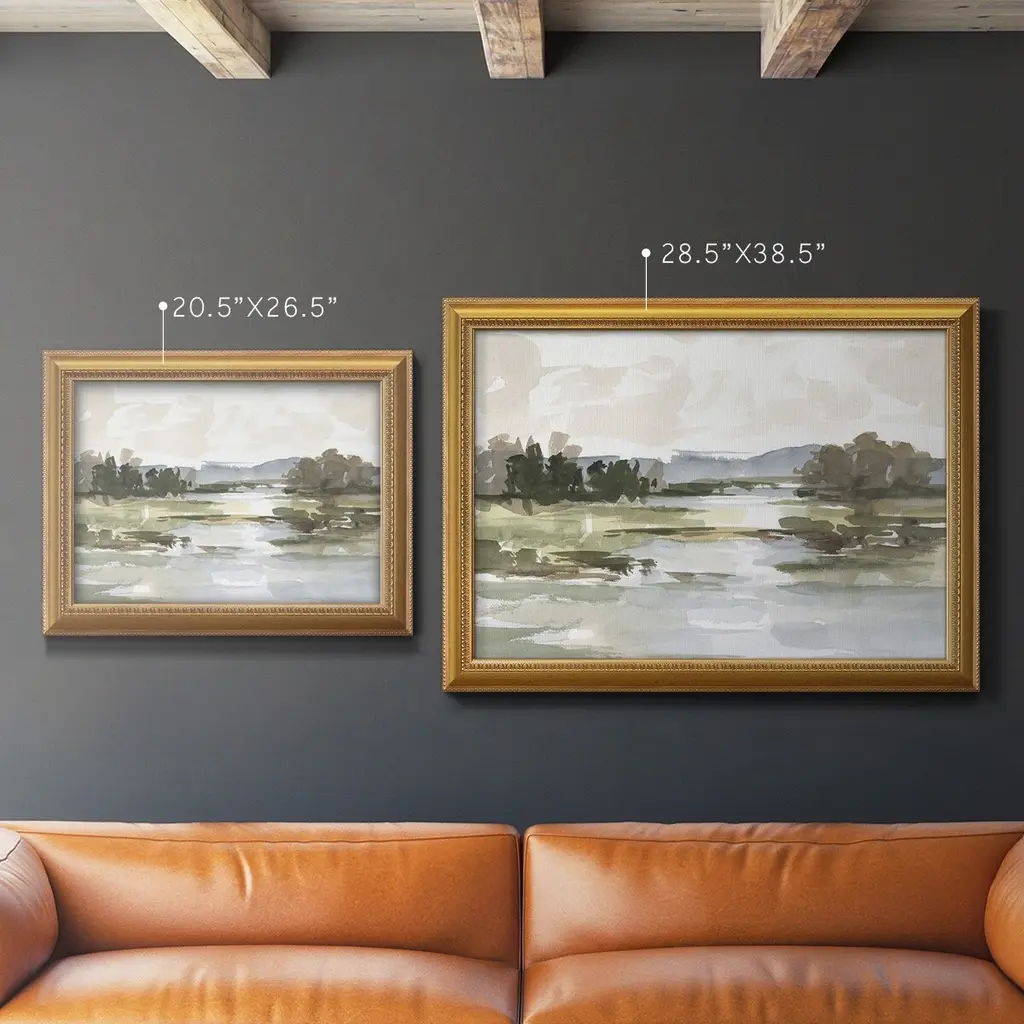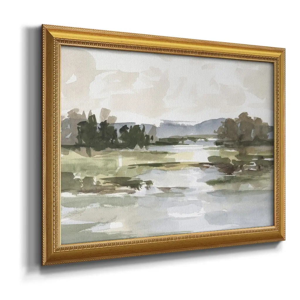 Autumn Stream II Premium Framed Canvas- Ready to Hang A Premium Framed Canvas created to last. Framed in distressed wood and available in an array of sizes and colors Featuring a beveled a solid wood stretcher bar, each piece comes ready to hand 3 SIZES AVAILABLE 16''X20'' - Overall Size 18'X27'' - Overall Size 24''x36'' - Overall Size Each piece is made to order. Each piece comes with hanging hardware. Made in the USA Ready to Hang Giclee Paper Print Acrylic Glass Beveled Matt Board