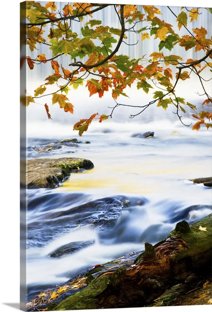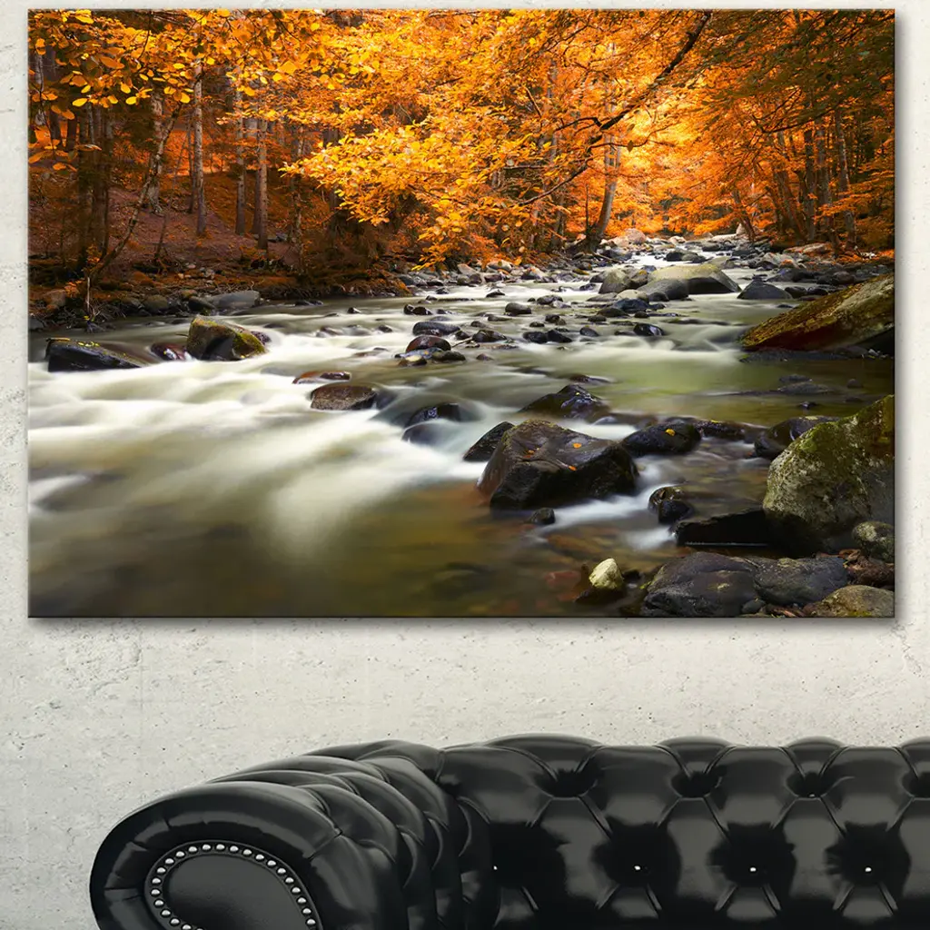 Autumn Terrai With Trees And River, Landscape Canvas Art Print, 60"x28"