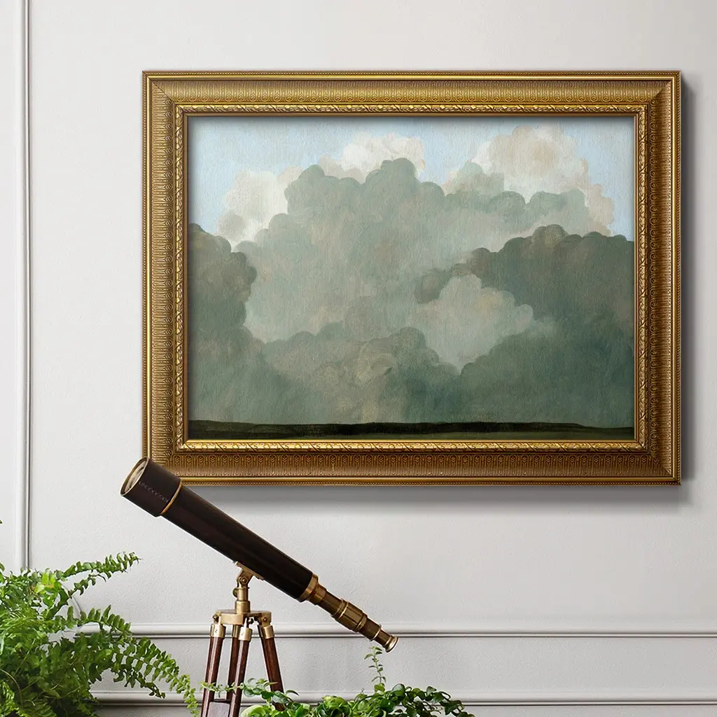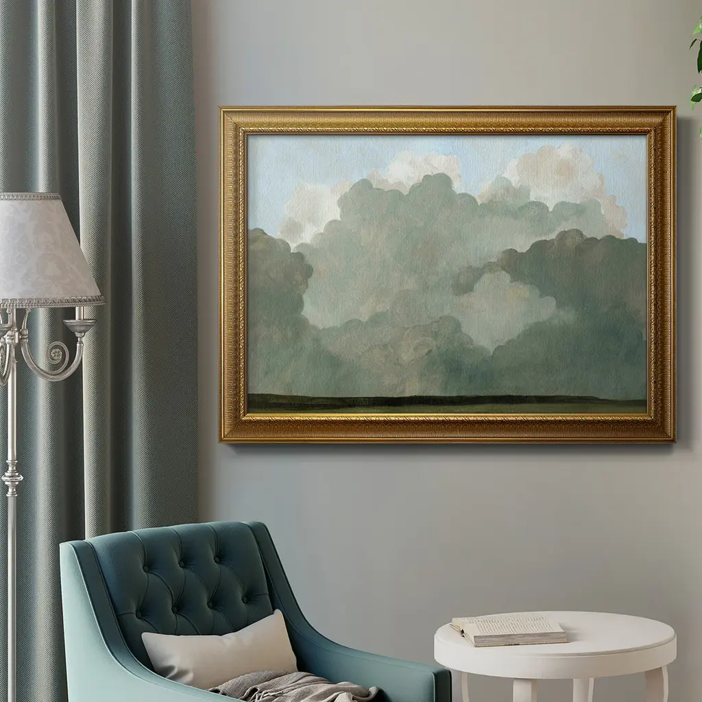 Autumn Thunderstorm I Premium Framed Canvas- Ready to Hang A Premium Framed Canvas created to last. Framed in distressed wood and available in an array of sizes and colors Featuring a beveled a solid wood stretcher bar, each piece comes ready to hand 3 SIZES AVAILABLE 16''X20'' - Overall Size 18'X27'' - Overall Size 24''x36'' - Overall Size Each piece is made to order. Each piece comes with hanging hardware. Made in the USA Ready to Hang Giclee Paper Print Acrylic Glass Beveled Matt Board