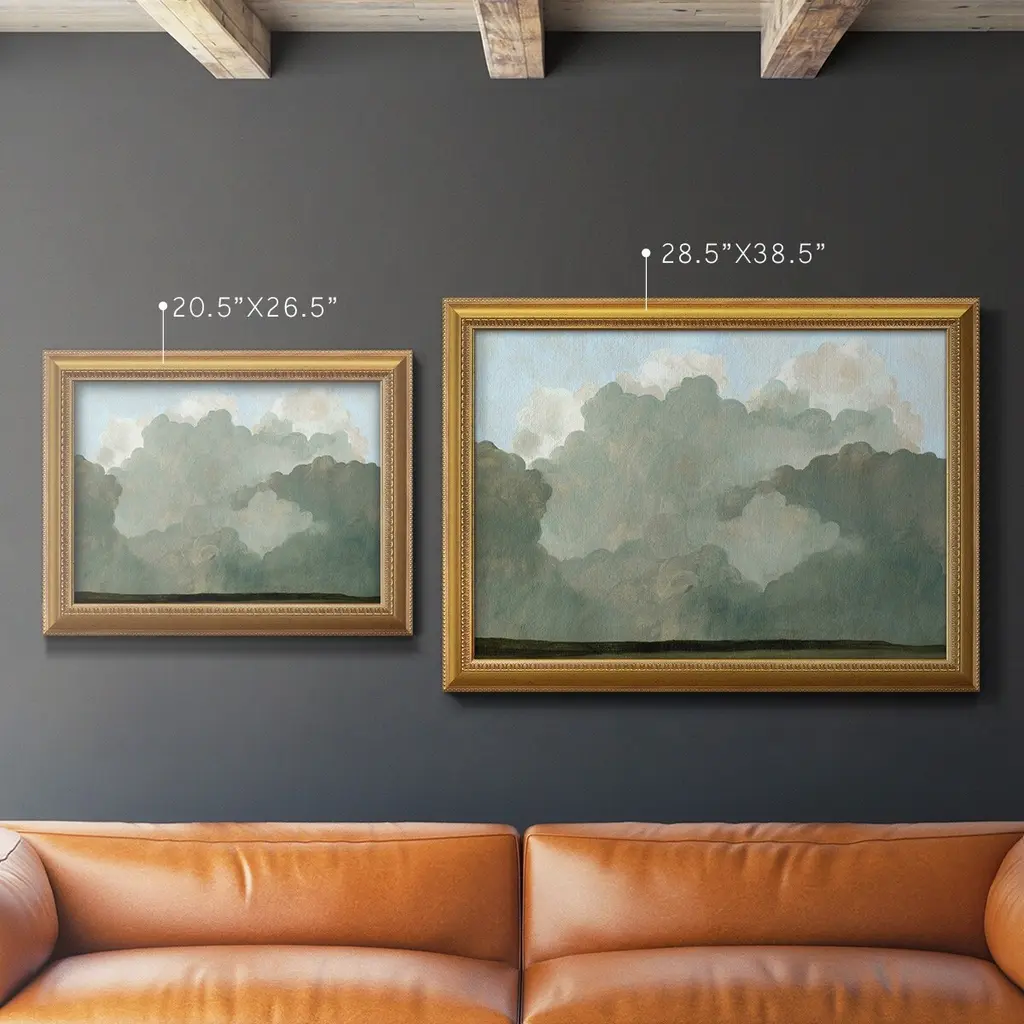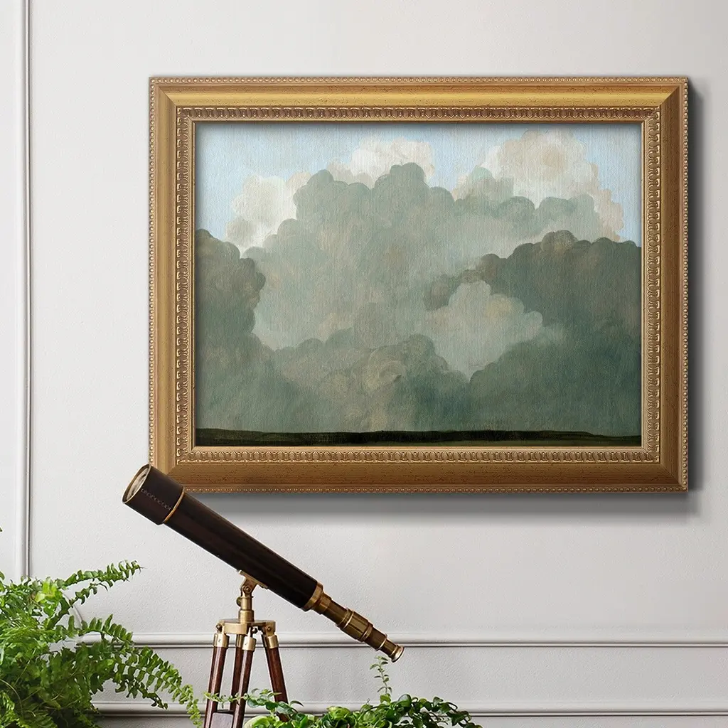 Autumn Thunderstorm I Premium Framed Canvas- Ready to Hang A Premium Framed Canvas created to last. Framed in distressed wood and available in an array of sizes and colors Featuring a beveled a solid wood stretcher bar, each piece comes ready to hand 3 SIZES AVAILABLE 16''X20'' - Overall Size 18'X27'' - Overall Size 24''x36'' - Overall Size Each piece is made to order. Each piece comes with hanging hardware. Made in the USA Ready to Hang Giclee Paper Print Acrylic Glass Beveled Matt Board