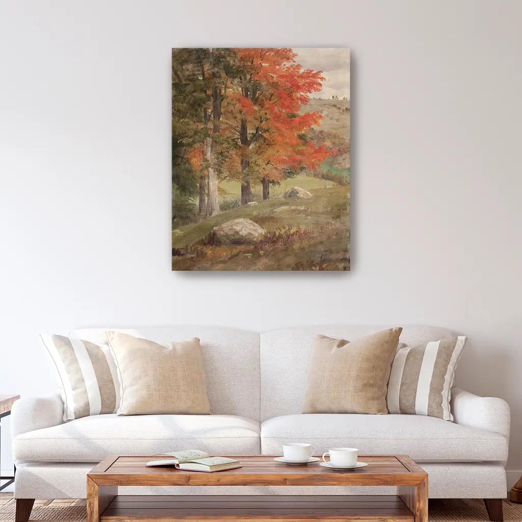 Bring the beauty of autumn indoors with this landscape fall canvas art print, featuring golden forests, misty hills, and crisp skies that capture the season’s serene charm. The rich hues and tranquil scenery evoke cozy walks through nature, making it a captivating focal point for seasonal décor. Perfect for lovers of fall landscapes and rustic wall art inspiration. Our Gallery Wrap Canvas Prints are proudly assembled with high quality materials in California, USA. Each piece is printed on a thick, archival grade canvas using Giclee technology. It is then hand-stretched by our experienced artisans over solid wood bars, which will not warp over time. The final product is a piece personally crafted for you to confidently display on your wall. Care and Assembly: Ensure that the location of your piece has little to no exposure to heat, sunlight, and moisture. Wipe clean, only if needed. Each piece includes a sawtooth hanger to hang on your wall vertically.