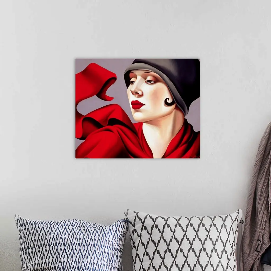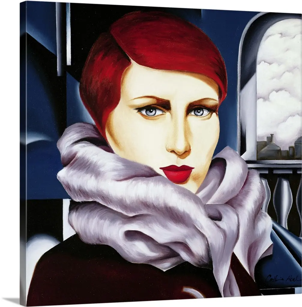Vintage artwork featuring a woman from what appears to be the early 20th century dressed in a hat/cap and scarf fluttering in the breeze.