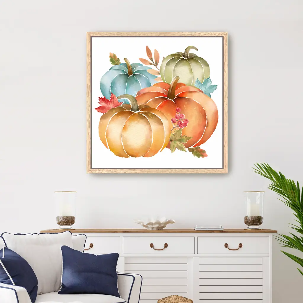 Transform any space into a fall retreat with a pumpkin canvas print that blends harvest motifs and seasonal warmth. A charming visual reminder of cozy gatherings and crisp autumn days. Our Gallery Wrap Canvas Prints are proudly assembled with high quality materials in California, USA. Each piece is printed on a thick, archival grade canvas using Giclee technology. It is then hand-stretched by our experienced artisans over solid wood bars, which will not warp over time. The final product is a piece personally crafted for you to confidently display on your wall. Care and Assembly: Ensure that the location of your piece has little to no exposure to heat, sunlight, and moisture. Wipe clean, only if needed. Each piece includes a sawtooth hanger to hang on your wall horizontally.