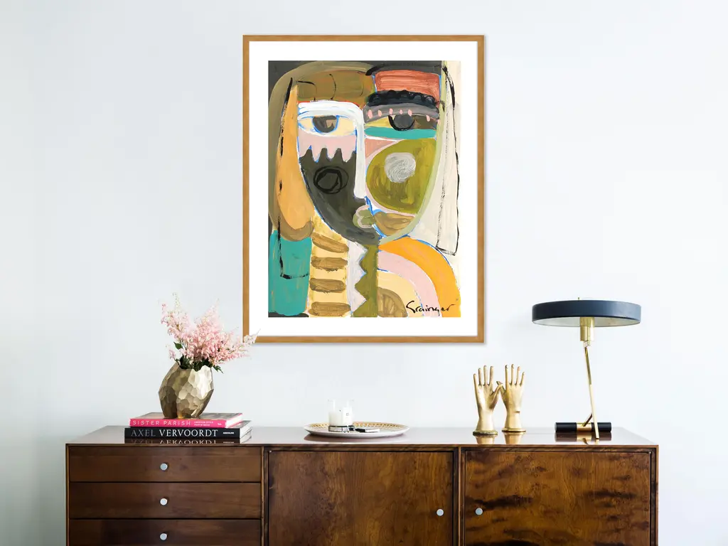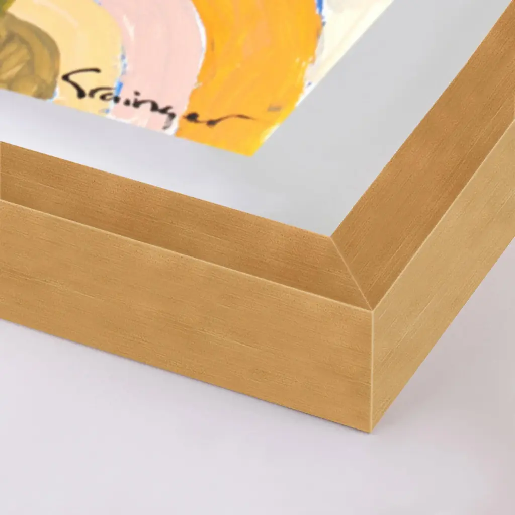 DESCRIPTION: Ava by Lesley Grainger in Gold Frame, Medium Art Print SPECIFICATIONS: Type: Framed Paper. Framed Size (in): 28.5x36. Orientation: Vertical. Flush/Float/Matted: matted. Frame Color: Gold. Hanging Hardware: Picture Perfect. FRAMING: Each art work arrives framed and ready to hang. We use handmade frames with a plexiglass glazing front, because it offers less glare than standard glass. At this time, we only offer framed prints. ARTIST BIO: Lesley Grainger was born in Yorkshire, England, where she grew up in a small Northern fishing town and currently resides in Orange County, California. She received a B.A. in Illustration and Design from the University of Lincoln. Early in her career, she worked as graphic designer and later began to produce children’s books and licensed artwork. For the last several years her main focus and passion has been abstract painting. She works intuitively and thoughtfully while discovering new and interesting colors and compositions. Painting is a reflection of experience and what Lesley has found is that each painting is translated to the next, like an ongoing story. Discovery is key in Lesley's expression, as she works with the canvas, adding and removing elements. This pushes her to new levels and brings a sense of how art can change the way we think, feel, and connect with the world.