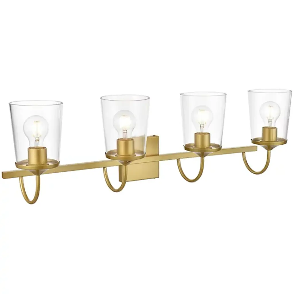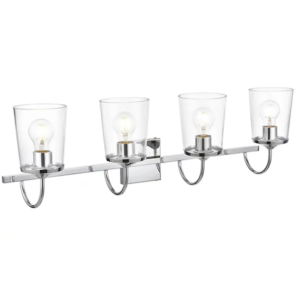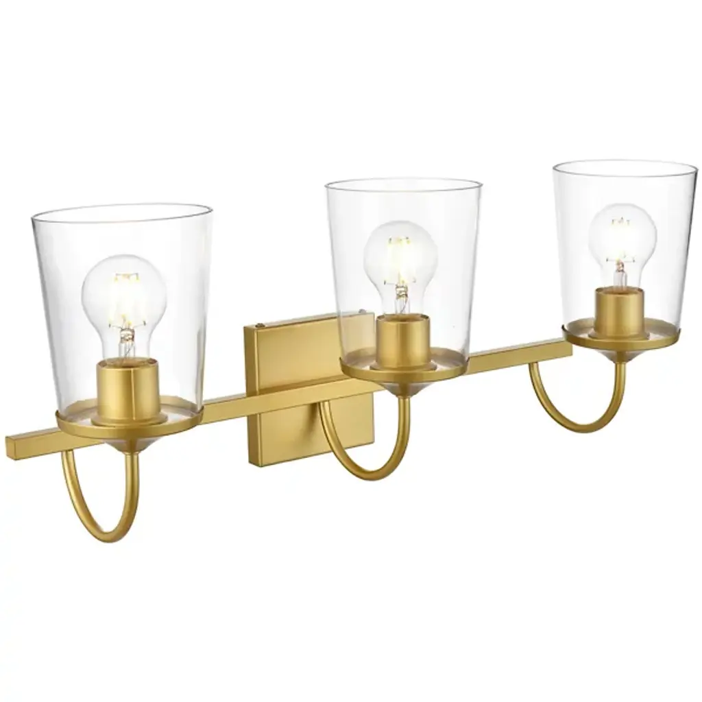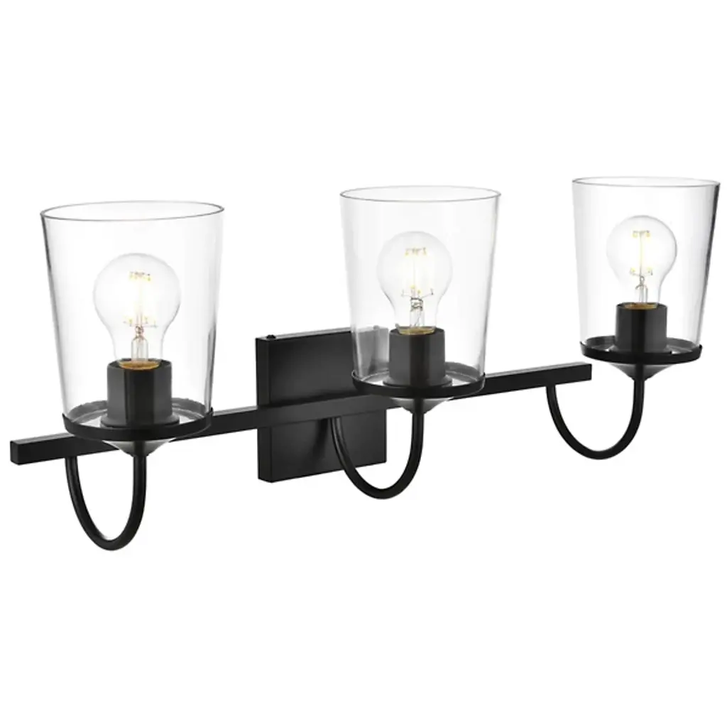 The Avani Vanity Light from Elegant Lighting features two clear bell glass shades that seem to hover naturally on curved metal arms. The transparent enclosures allow the bulbs to take center stage. A sleek horizontal bar connects the two light sources, anchored by a central backplate that adds visual weight and balance to the composition. Crafted from durable iron and glass, this luminaire can be installed as an uplight for a soft glow or flipped for more focused task lighting.