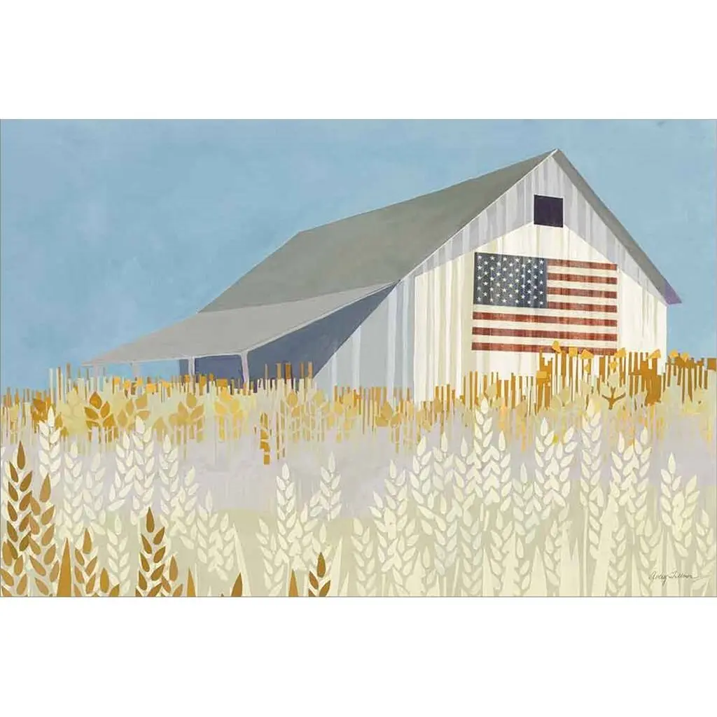 Avery Tillmon 'Wheat Fields Barn With Flag' Framed Art - 32 X 24