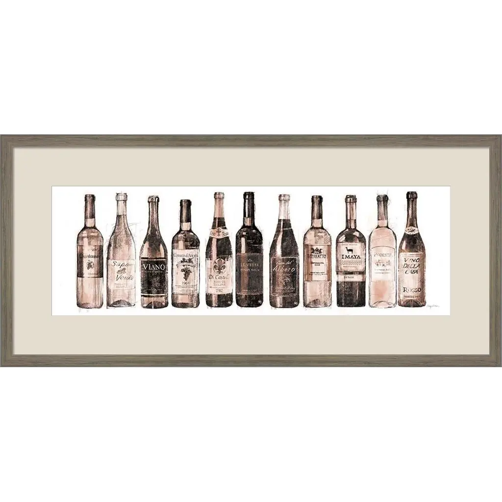 Wine Cellar Red Watercolor Imaya by Avery Tillmon is a high quality piece of framed artwork. The finished size of this piece is 30" X 14". It has a Distressed Grey Knotty Wood frame, is single matted and finished with high quality Acrylic Plexiglass. 100% Satisfaction Guaranteed.