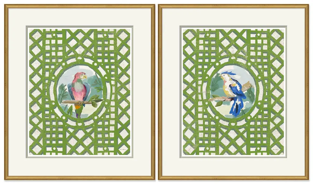 Aviary, Multi & Blue By Dana Gibson, Framed Art Prints - Set Of 2