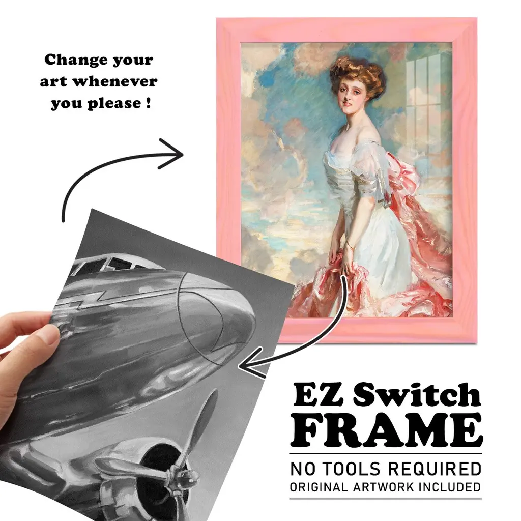 Aviation Icon I -EZ SWITCH Framed Print w/glass-Cherry Red A delightful, framed print. Featuring a solid wood frame with real wood glass. This premium print is giclee quality. In addition, every frame features a removable back and table top stand. This allows you to change your art in the future or to just stand the art on a table for a new look. We are sure you'll enjoy our new series of EZ SWITCH Framed Art. Solid Wood Frame Real Glass Removable / Replaceable Art Built in Tabletop Stand Sizes range from 4x6 up to 12x15 - buy just one or pair them up as sets as you see fit.