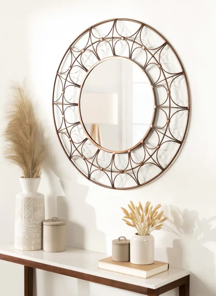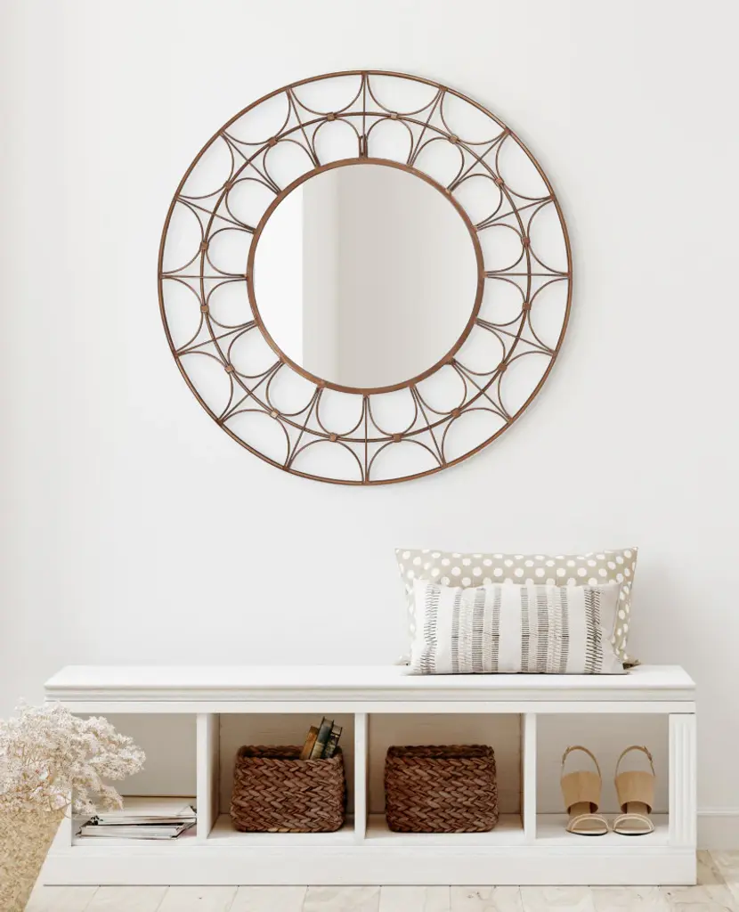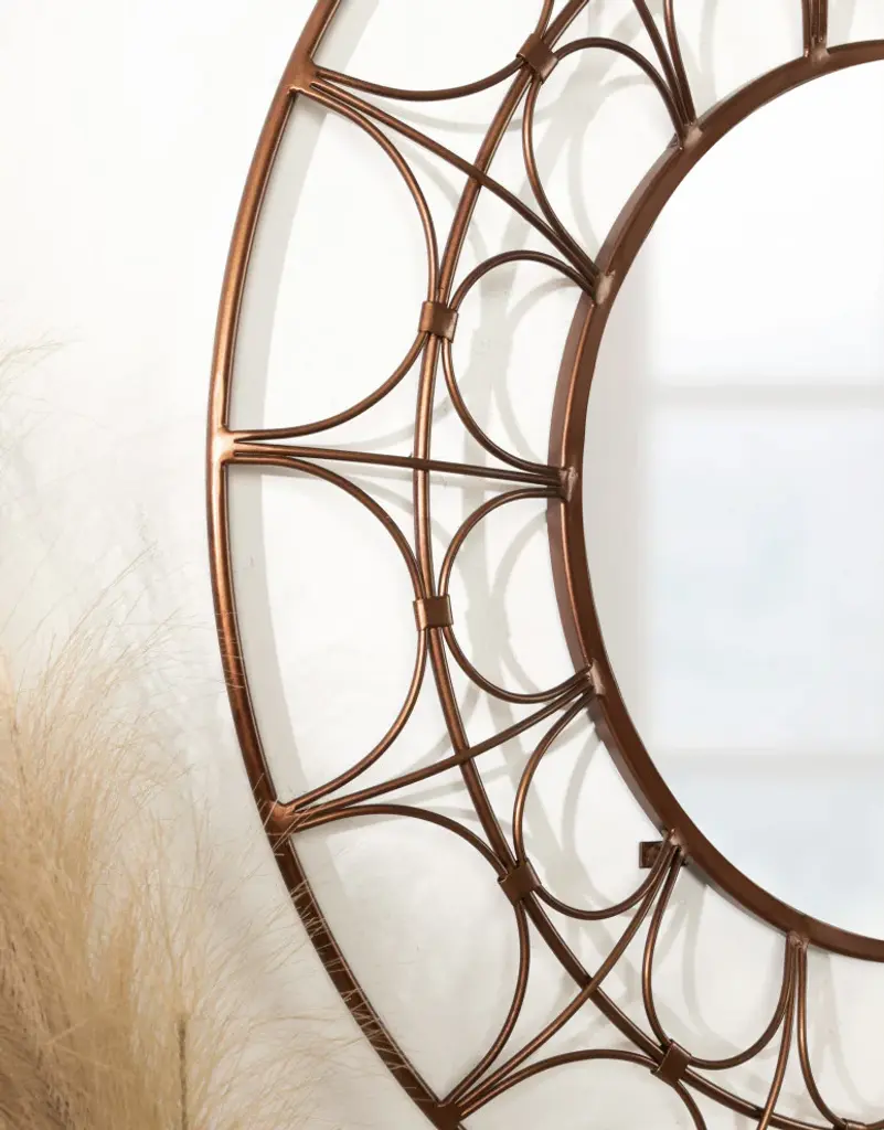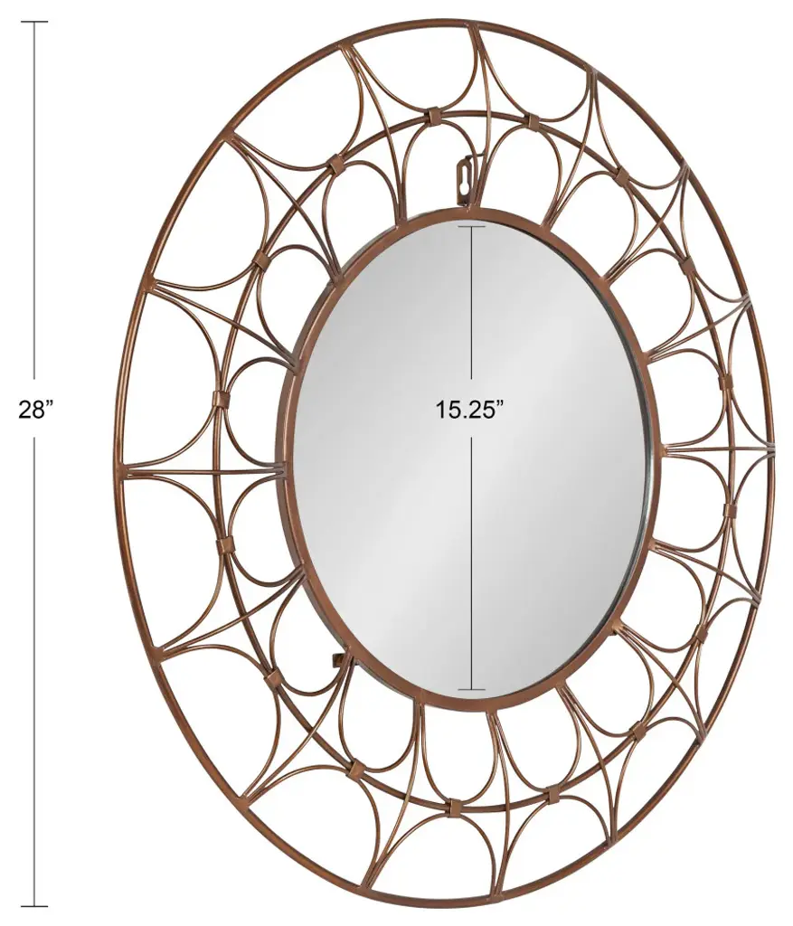 Highlight your space with a beautiful and sophisticated wall mirror like the Avoca. This mesmerizing accent piece is inspired by avant-garde modern art with a bold latticework within the round frame. Embrace its unique webbed design to create a glamorous and unique look to set the precedent of excellence within your home decor. The Avoca''s frame is crafted from robust iron material, elevating its rich design with quality craftsmanship. The large size of this wall decor helps it command attention throughout various rooms of the home, measuring 28 inches wide by 28 inches tall. The Avoca''s modern look and staggering size make it an excellent home decor element to mount on a living room mantle, bathroom vanity, or over an entryway console table. Its contemporary, rich bronze finish makes this accent piece stand out in brilliant sophistication while maintaining a vibrant look. Hanging a mirror like the round Avoca emphasizes the natural light of your space, creating a more open and welcoming environment. Mount this lovely modern mirror instantly with the secure keyhole hanger attached to the back.• Modern Look: The Avoca wall mirror invokes visions of avant-garde modern art with webbed latticework within its round metal frame, emphasizing glamour and beauty with a dark bronze finish • Quality Material: The webbed frame of the Avoca mirror is made from robust iron to create a robust accent piece made to last for years of elegant, glamorous display • Ample Size: The Avoca wall mirror''s overall dimensions are 28 inches wide by 28 inches tall, drawing attention to its stunning design and staggering size• Versatile: Hang this circular wall mirror to provide a commanding statement above your entryway console, living room mantle, or bathroom above your vanity• Easy to Hang: The Avoca wall mirror hangs in a matter of minutes thanks to a robust metal keyhole hanger securely attached to the back of the circular frame