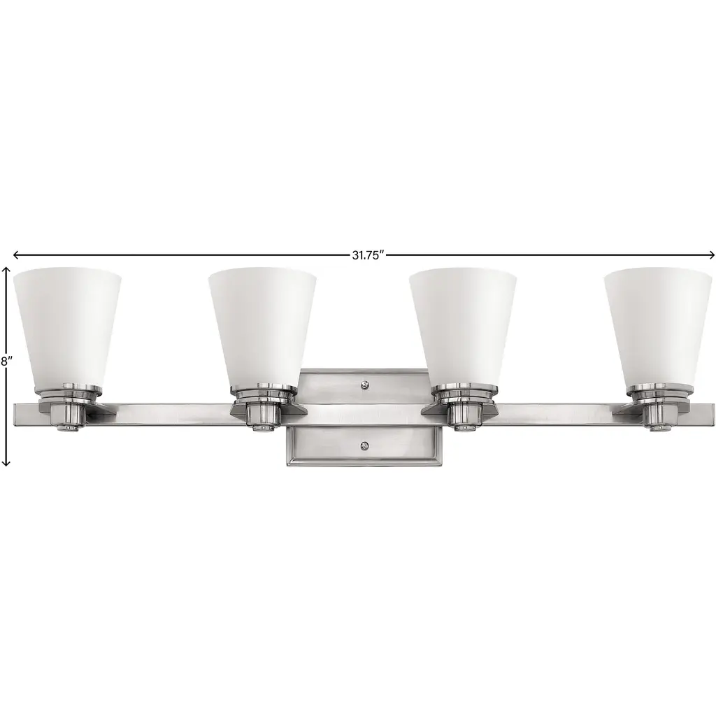 Avon 4 Light 31.75 Inch Brushed Nickel Vanity Light Wall Light In Etched Opal