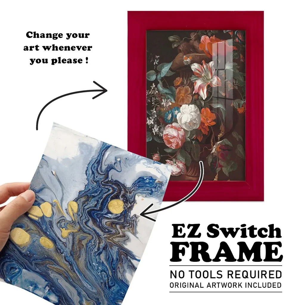 Awaken Heart I -EZ SWITCH Framed Print w/glass-Cherry Red A delightful, framed print. Featuring a solid wood frame with real wood glass. This premium print is giclee quality. In addition, every frame features a removable back and table top stand. This allows you to change your art in the future or to just stand the art on a table for a new look. We are sure you'll enjoy our new series of EZ SWITCH Framed Art. Solid Wood Frame Real Glass Removable / Replaceable Art Built in Tabletop Stand Sizes range from 4x6 up to 12x15 - buy just one or pair them up as sets as you see fit.