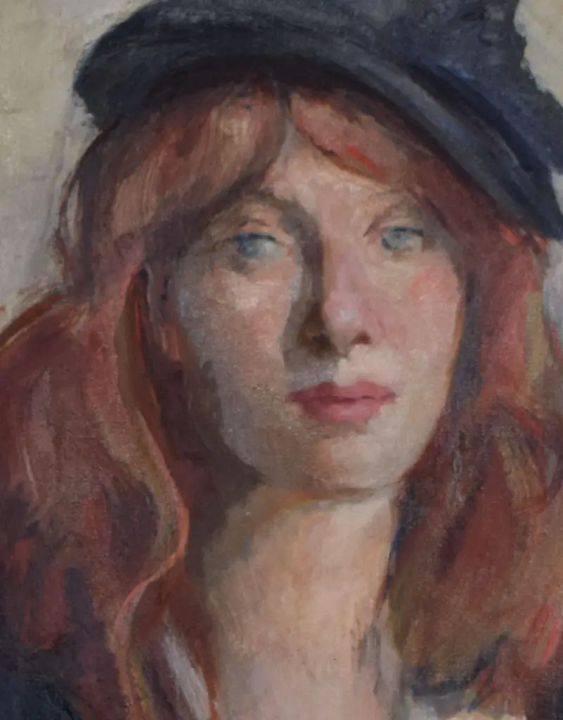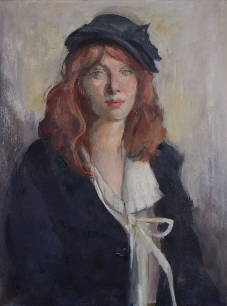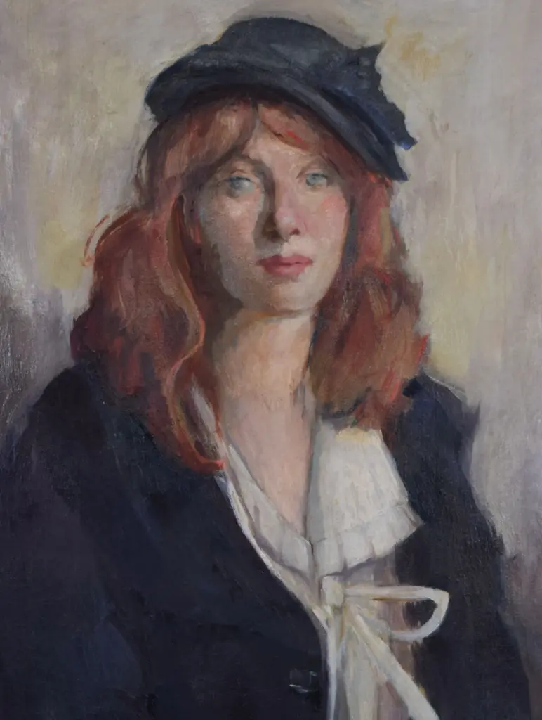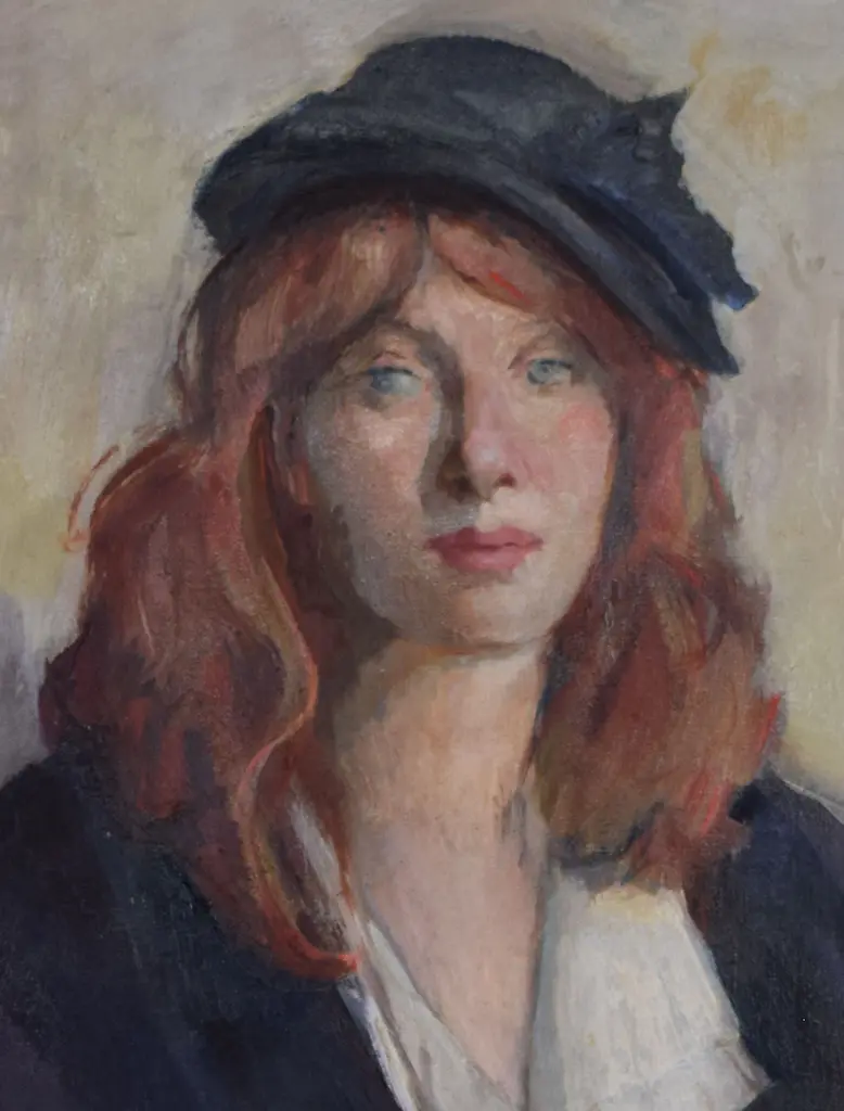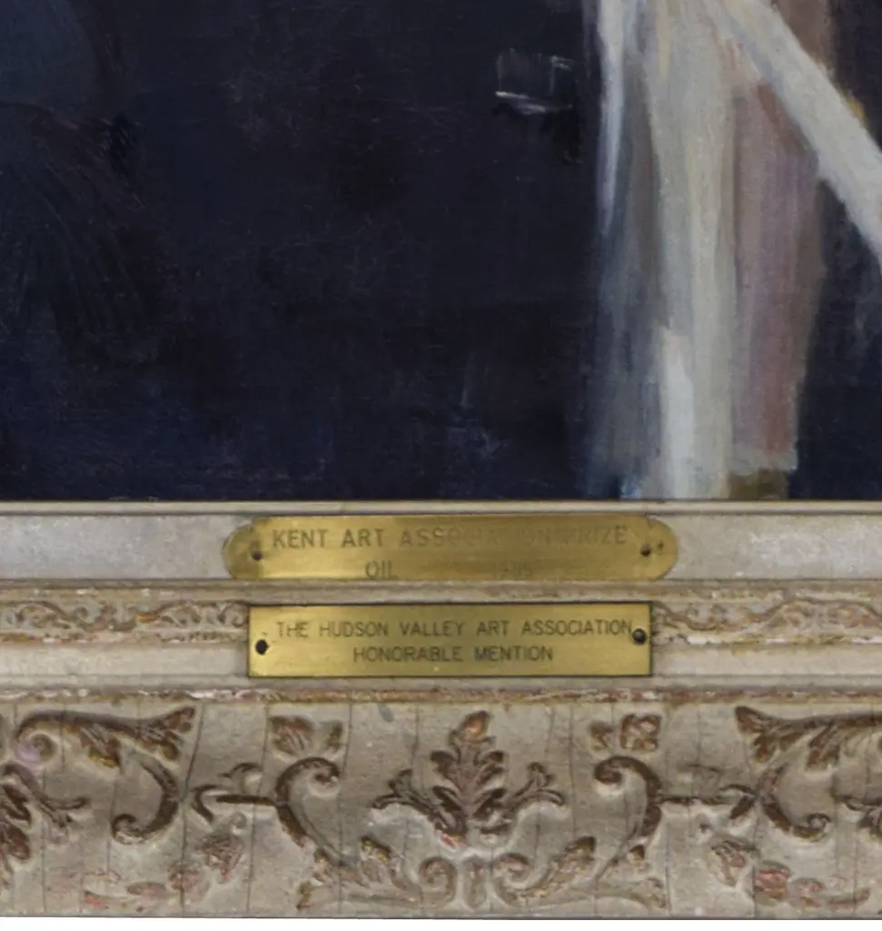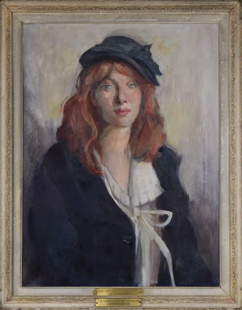 Vintage, award winning portrait of an Irish woman by Anne "Nancy" Reilly (1927 - 2018). Presented in original parcel gilt vintage frame C.1950s-1960s with award plaques from The Hudson Valley Art Association and The Kent Art Association 1985. Painting circa 1960s-1985. From the estate of the artist. Reilly studied oil painting with local noted artist, Samuel Brown and established a successful career as a prominent painter, winning numerous prestigious awards in national art organizations.