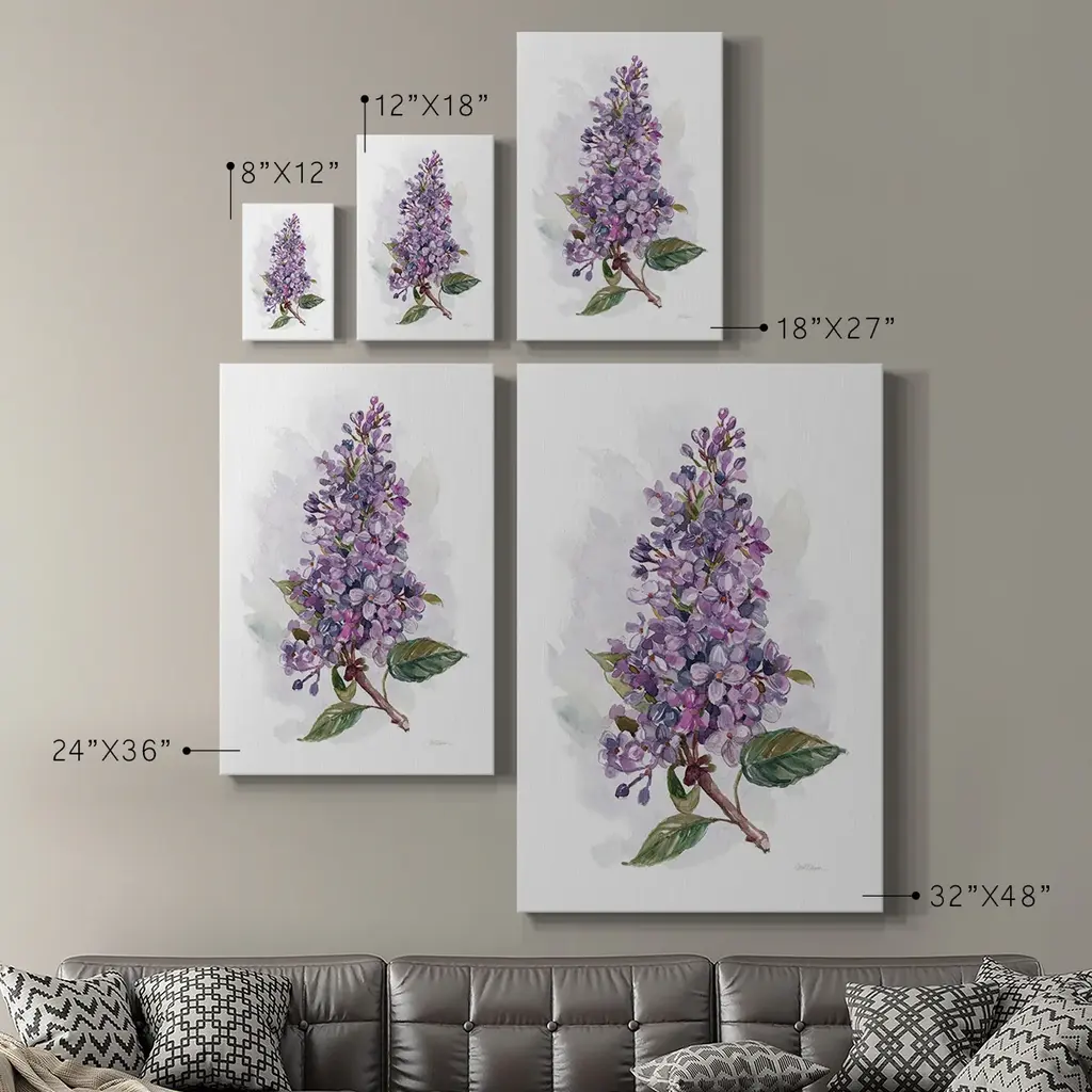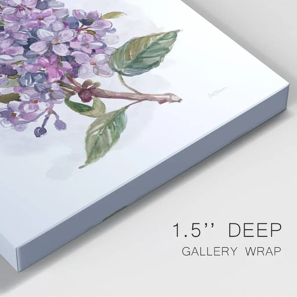 Awash in Lilac I Premium Gallery Wrapped Canvas - Ready to Hang A premium hang stretched gallery wrapped canvas print created to last. Featuring a beveled a solid wood stretcher bar, each piece comes ready to hang 6 SIZES AVAILABLE 8''X12'' - Overall Size 12'X18'' - Overall Size 18''x27'' - Overall Size 24''x36'' - Overall Size 32''x48'' - Overall Size 40"x60" - Overall Size Each piece is made to order. Built to Last Each piece comes ready to hang Solid wood stretcher Fade and Water resistant Made domestically