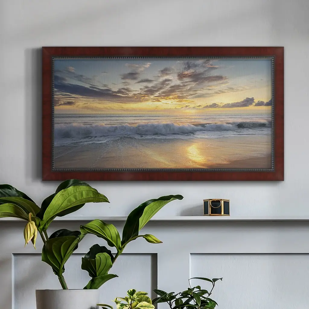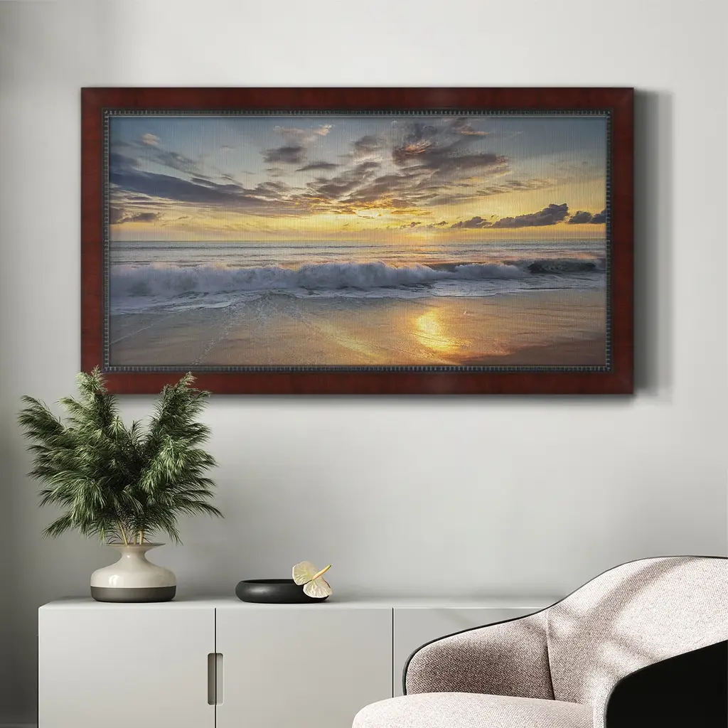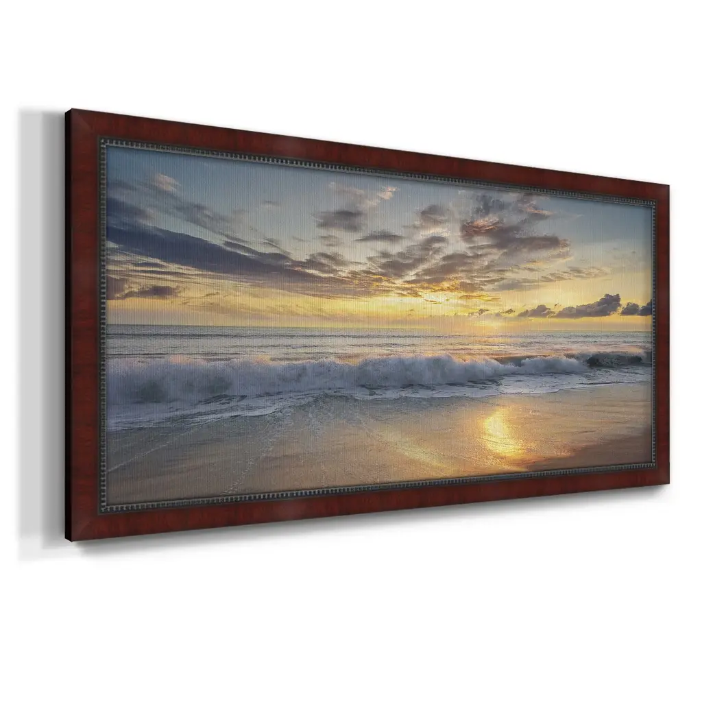 Azio Island Premium Framed Canvas- Ready to Hang A Premium Framed Canvas created to last. Framed in distressed wood and available in an array of sizes and colors Featuring a beveled a solid wood stretcher bar, each piece comes ready to hand 3 SIZES AVAILABLE 21''X37'' - Overall Size 25''X45'' - Overall Size 29''x53'' - Overall Size Each piece is made to order. Each piece comes with hanging hardware. Made in the USA Ready to Hang Giclee Paper Print Acrylic Glass Beveled Matt Board