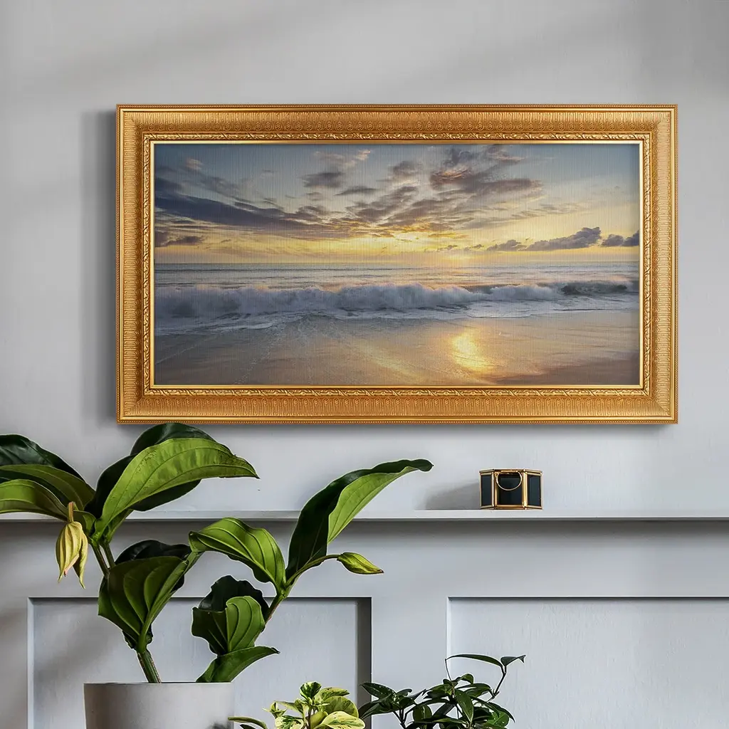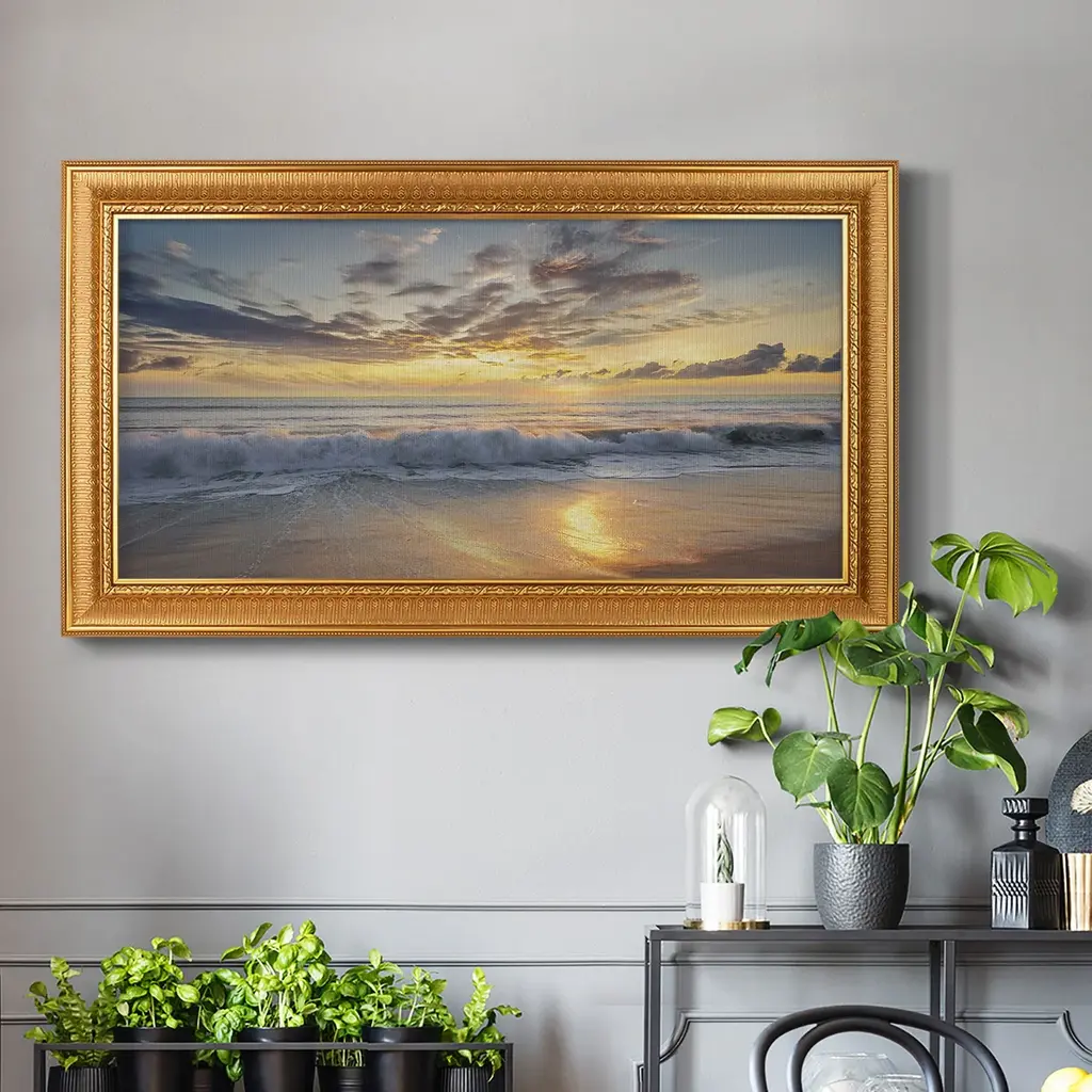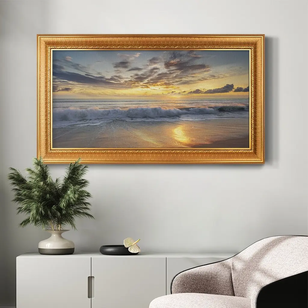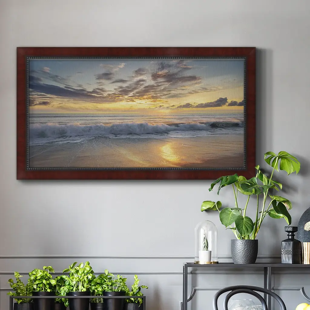 Azio Island Premium Framed Canvas- Ready to Hang A Premium Framed Canvas created to last. Framed in distressed wood and available in an array of sizes and colors Featuring a beveled a solid wood stretcher bar, each piece comes ready to hand 3 SIZES AVAILABLE 21''X37'' - Overall Size 25''X45'' - Overall Size 29''x53'' - Overall Size Each piece is made to order. Each piece comes with hanging hardware. Made in the USA Ready to Hang Giclee Paper Print Acrylic Glass Beveled Matt Board