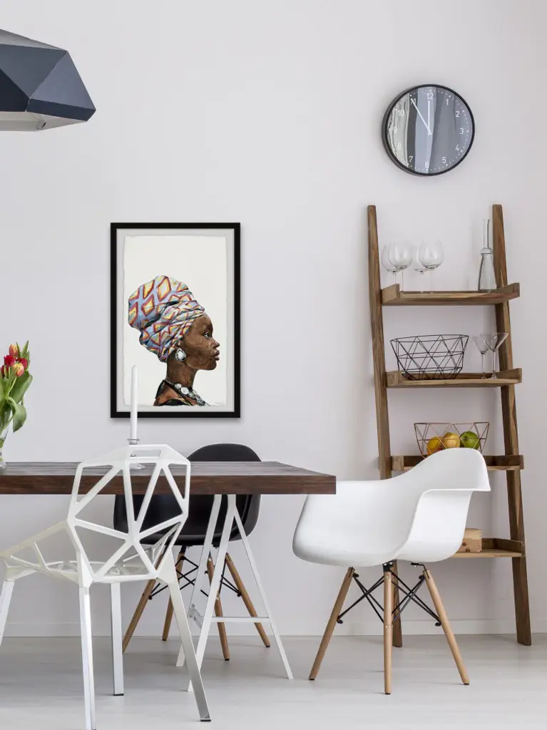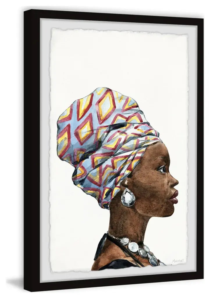 Flood your space with great energy by putting this watercolor painting print on display. This beautiful print features a side profile of a woman wearing a head wrap. Proudly printed in the USA, this piece is printed on high quality archive paper and professionally hand-framed. With wall-mounting hooks included, this artful accent is ready to hang up as soon as it reaches your front door.- Top quality Giclee print on high resolution Archive Paper- Hand cut deckled edges- High quality durable non-warping frame- Finished under shatter resistant plexiglass- Arrives ready to hang- Includes a certificate of authenticity- Printed in the USA