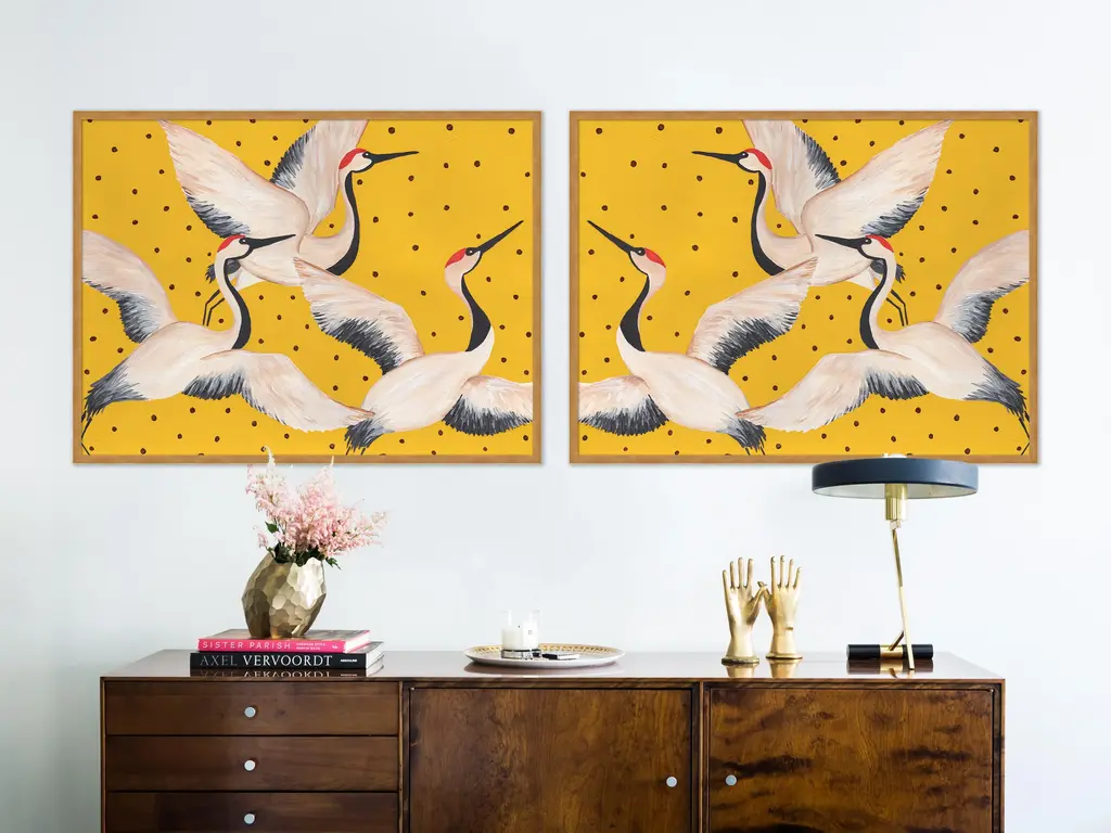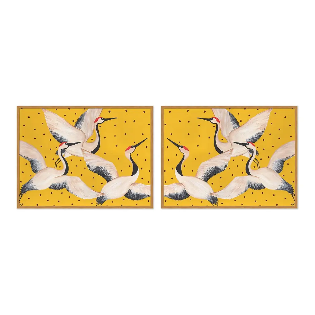 Babette Cleo & Estelle Diptych In Yellow By Willa Heart In Gold Frame, Large Art Prints, Set Of 2