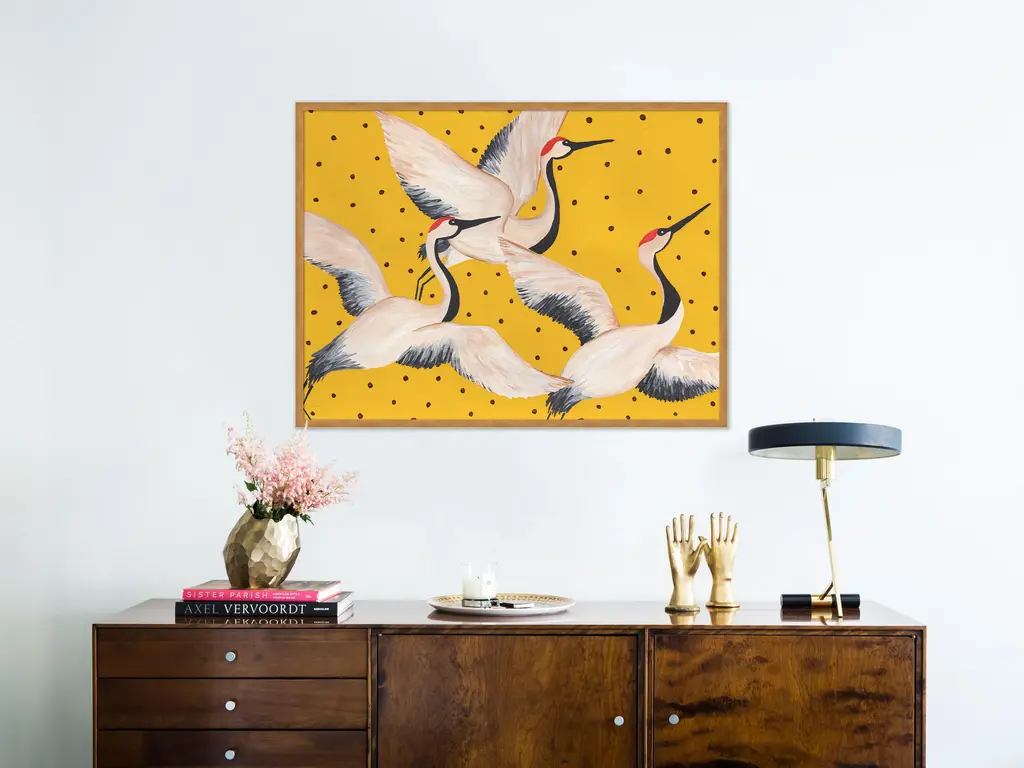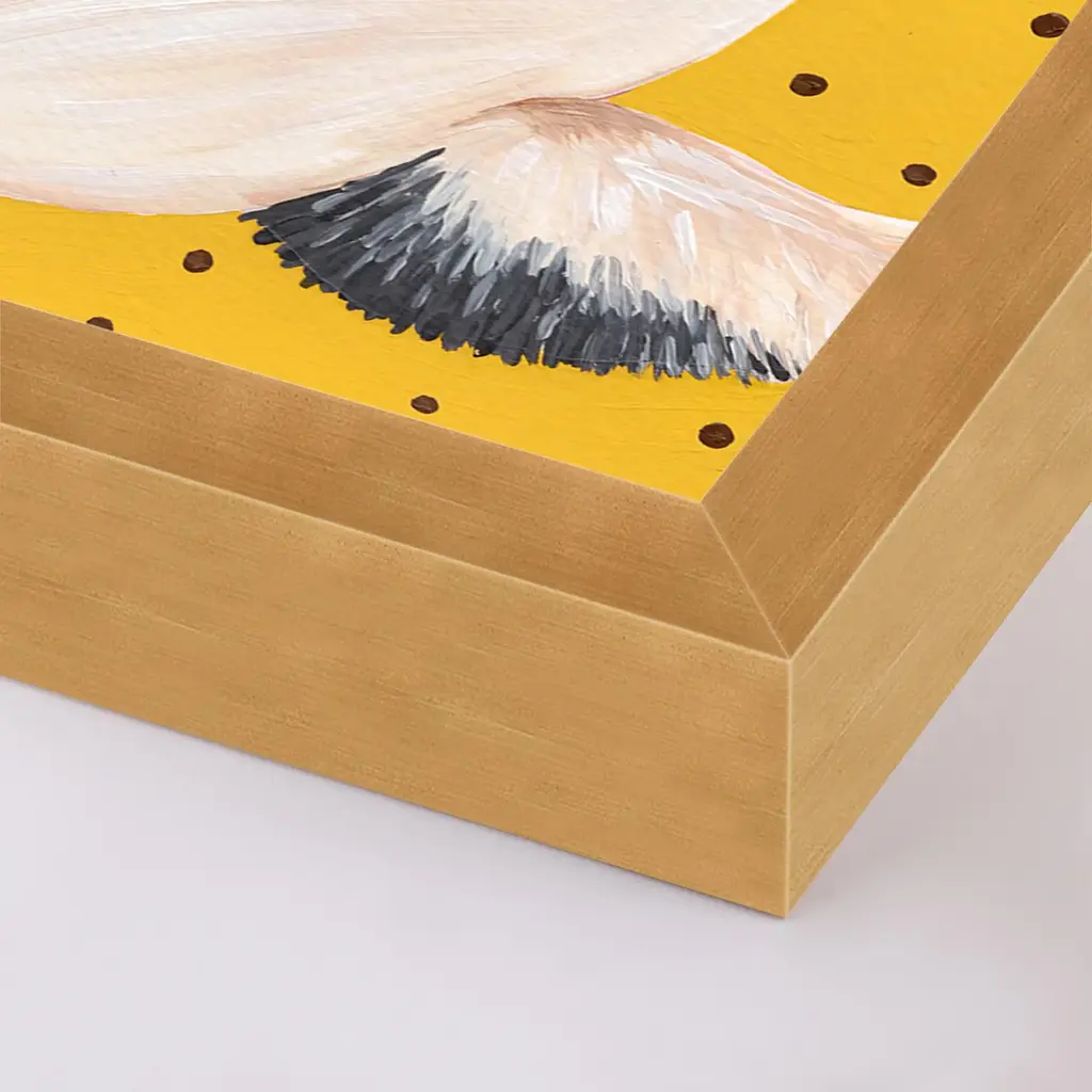DESCRIPTION: Babette Cleo & Estelle Rouleau, in Yellow by Willa Heart in Gold Frame, Large Art Print SPECIFICATIONS: Type: Giclée Art Print on Matte Paper. Overall Size (in): 40x30. Image Size (in): 39x29. Orientation: Horizontal. Flush/Float/Matted: Flush. Frame Color: Gold. Hanging Hardware: Picture Perfect. FRAMING: Each art work arrives framed and ready to hang. We use handmade frames with a plexiglass glazing front, because it offers less glare than standard glass. At this time, we only offer framed prints. ARTIST BIO: Willa Heart is the brainchild of artist and designer Alyssa Jill Harris. Alyssa was born and raised in Boston, MA, and currently lives in Camden, SC. After being diagnosed at a young age as dyslexic, Alyssa’s mother (whose middle name is Willa) immersed her in the arts knowing her strengths would lie outside of the classroom. Alyssa credits her dyslexia for allowing her to see the world differently, which has made her extra creative. Alyssa has attended University of Hartford Art School, School of the Museum of Fine Arts Boston, North Bennet Street School, & Boca Raton Museum Art School.