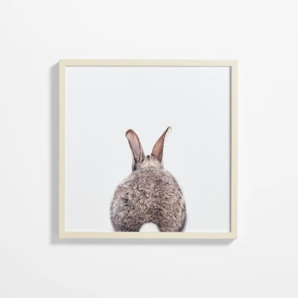 Baby Bunny Tail Walnut Wood Framed Wall Art Print