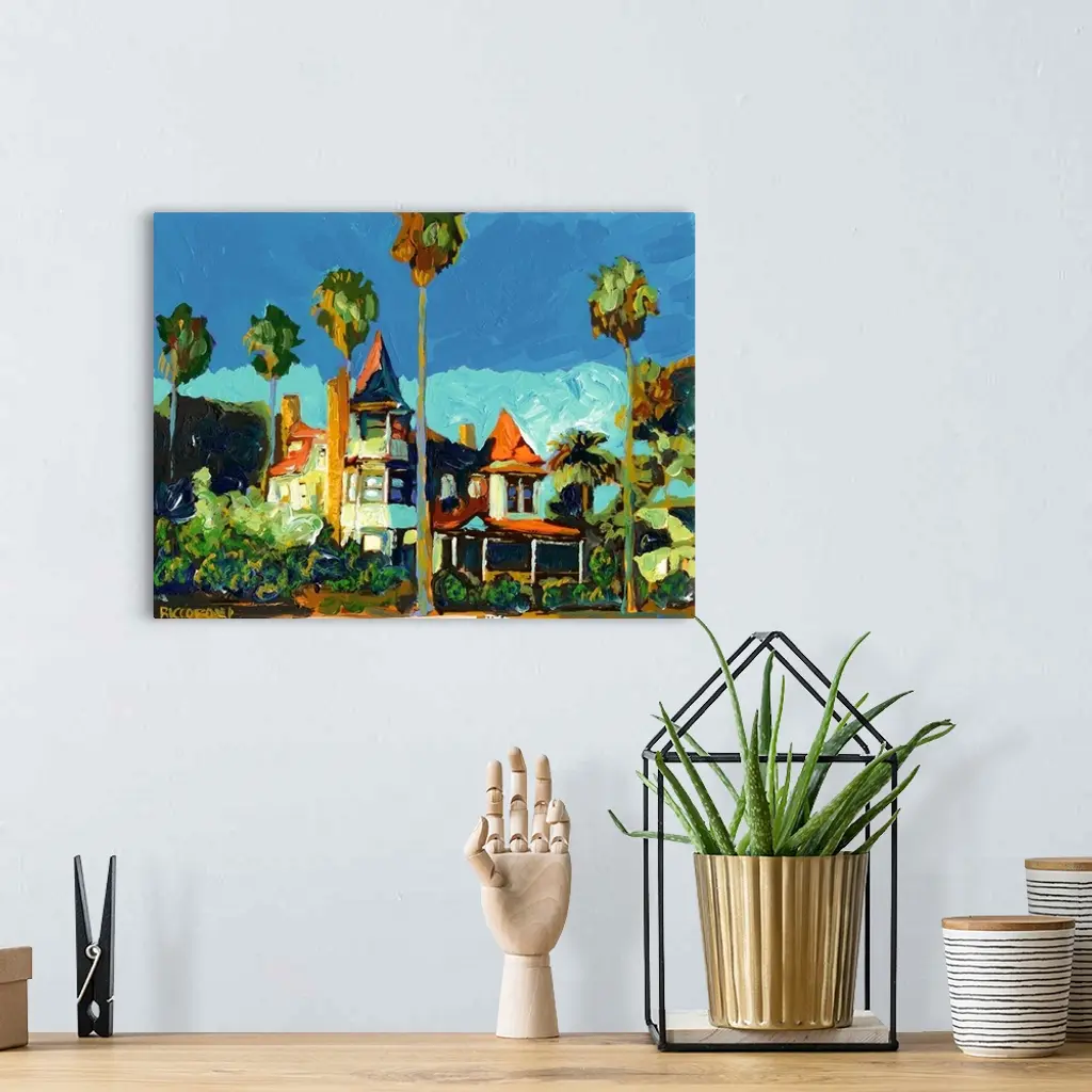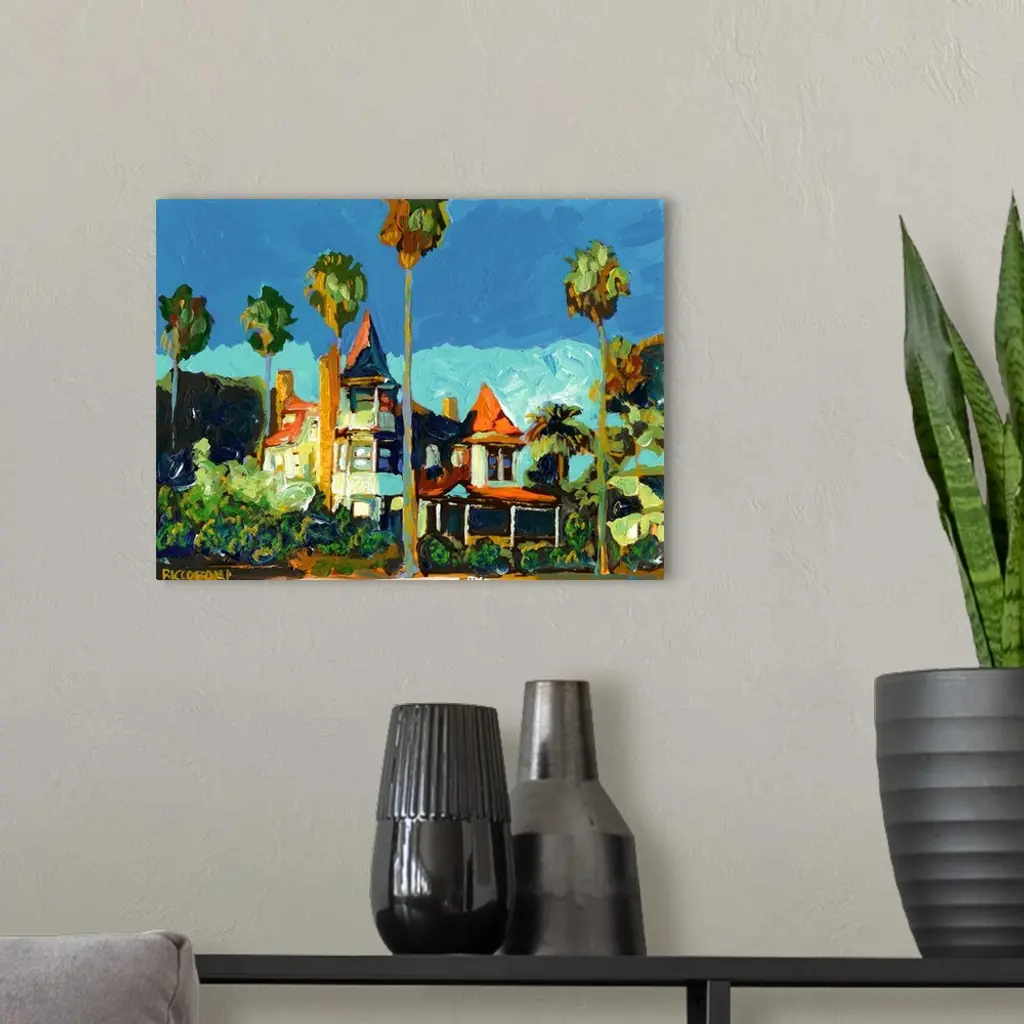 Coastal mansion known as the Baby Del on Coronado in an abstract Impressionist Style painting by RD Riccoboni.