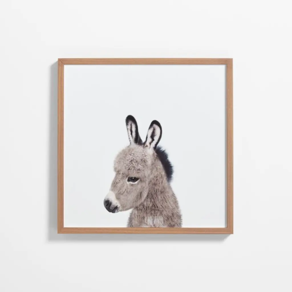 Baby Donkey Maple Wood Framed Wall Art Print